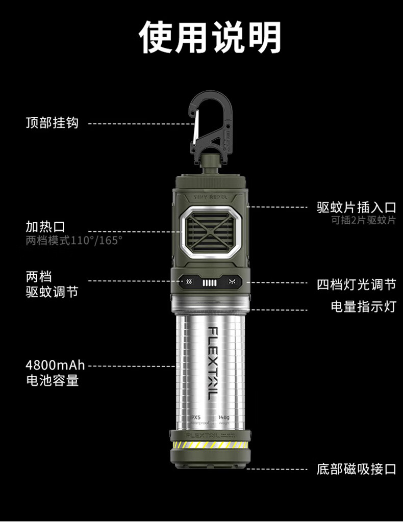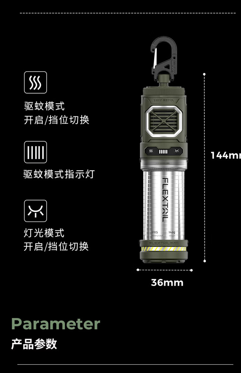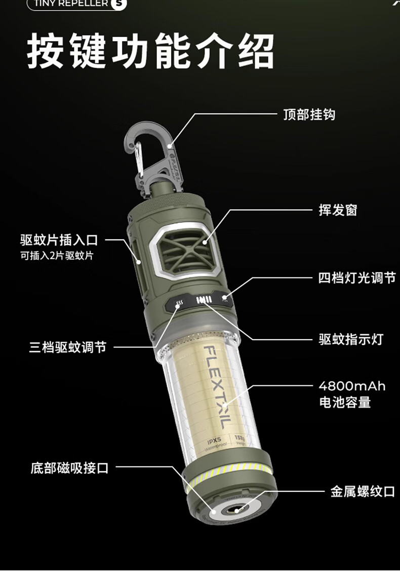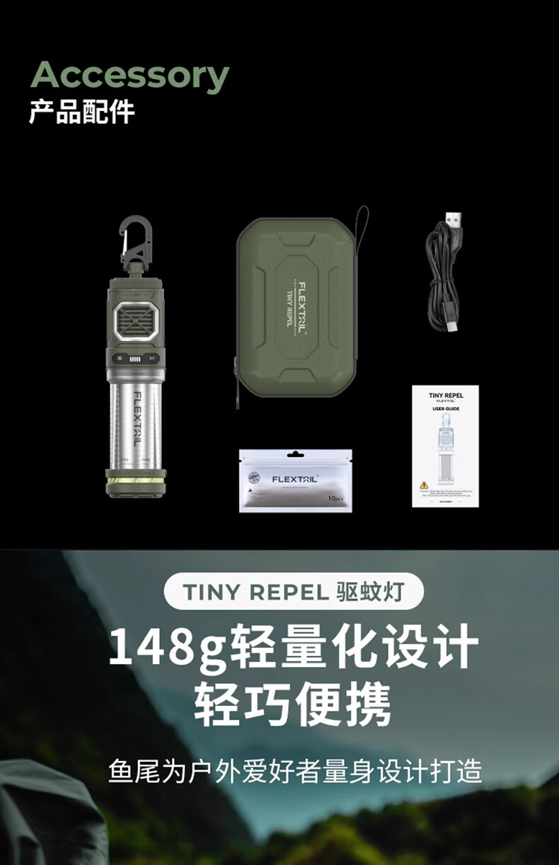 FLEXTAILGEAR鱼尾二代驱蚊灯户外驱蚊神器徒步露营手持防蚊钓鱼便携灭蚊营地灯 【向野而生】定制灯罩白色 不含灯 软