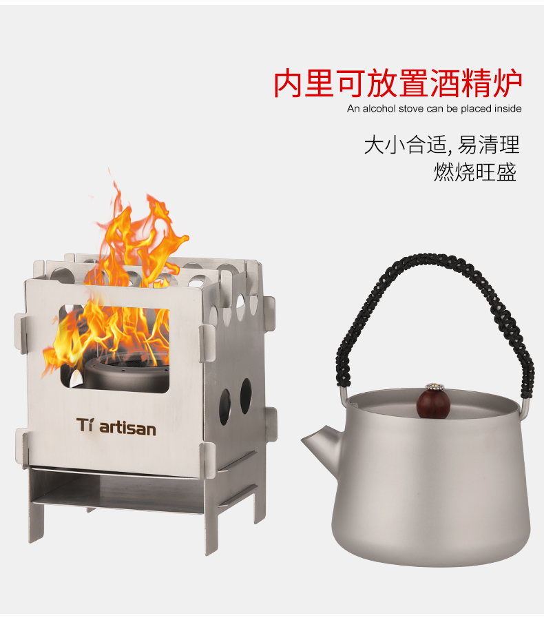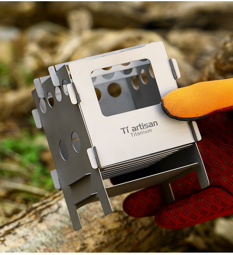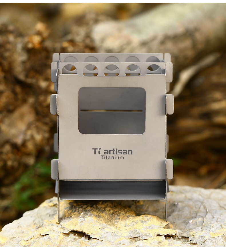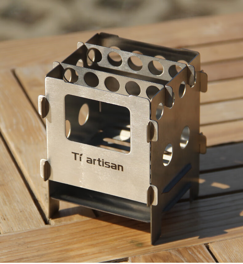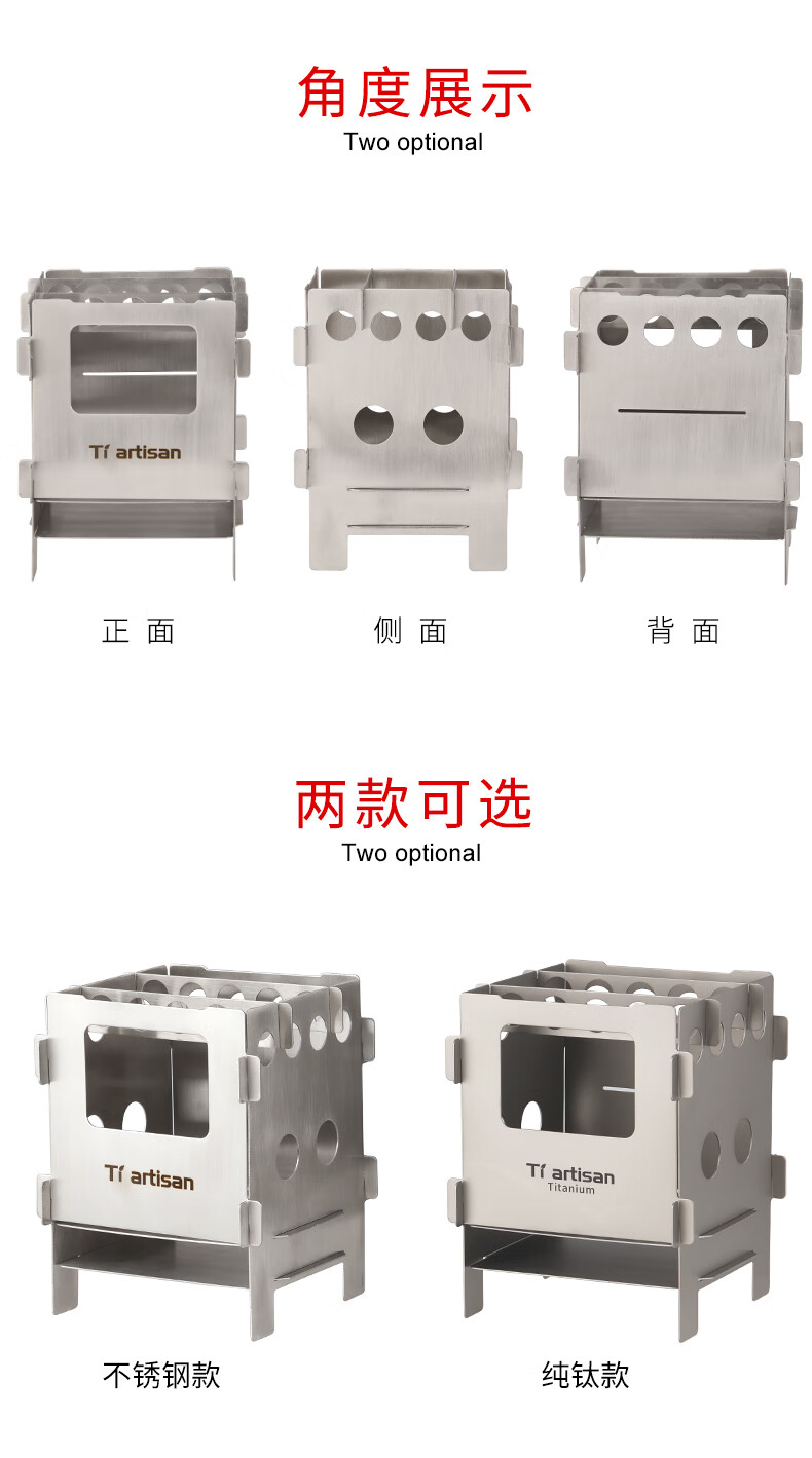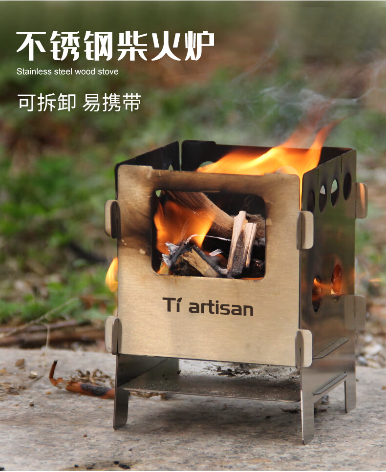 Ti artisan/钛工匠户外不锈钢四方木柴炉子酒精炉便携炉灶灶台野外插卡式炉
