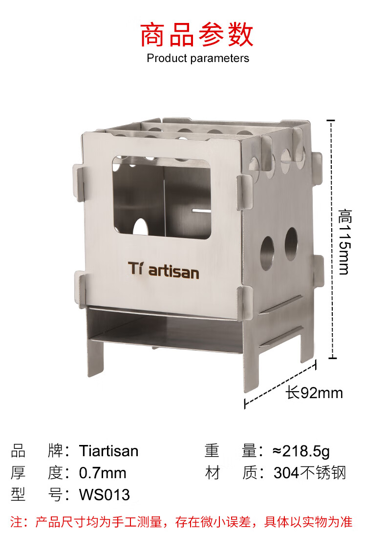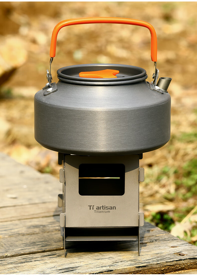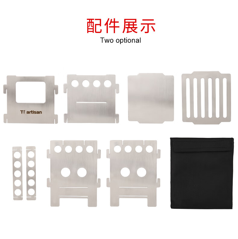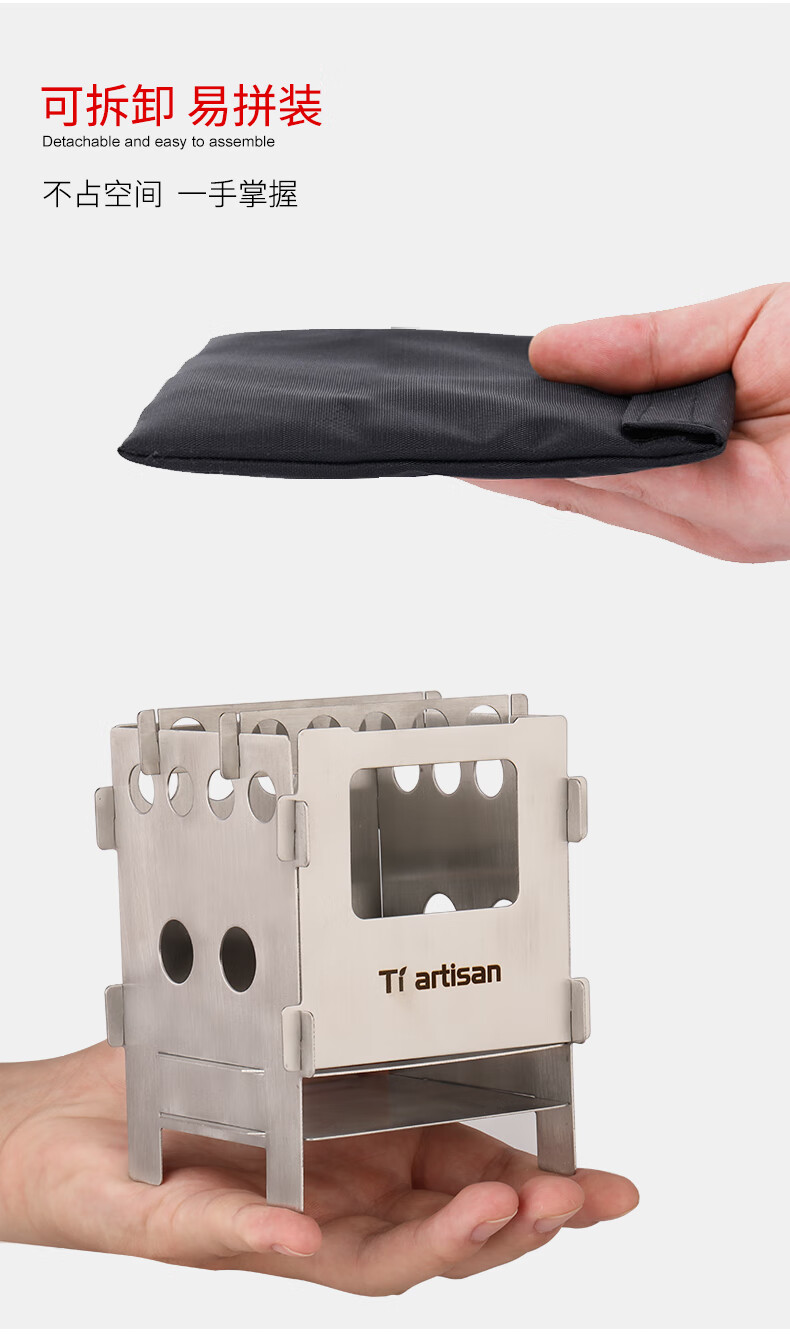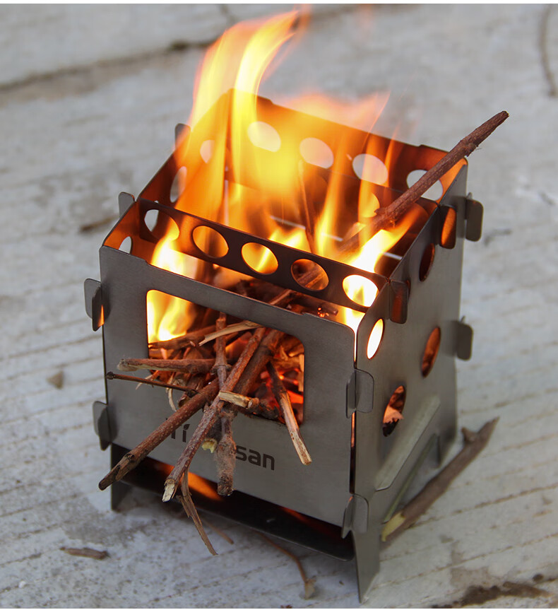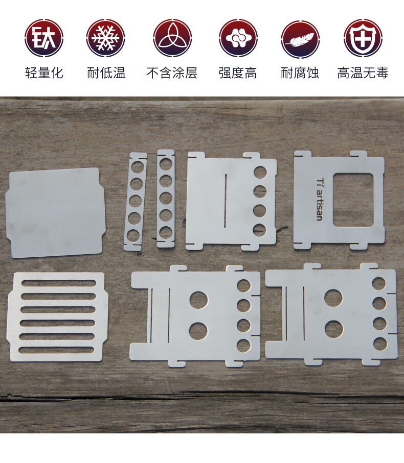 Ti artisan/钛工匠户外不锈钢四方木柴炉子酒精炉便携炉灶灶台野外插卡式炉