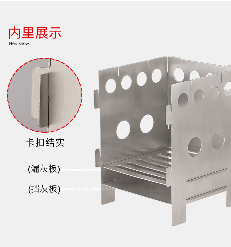 驴小贝户外不锈钢方形火炉子野营露营徒步折叠迷你卡片便携多功能取暖炉 方形柴火炉