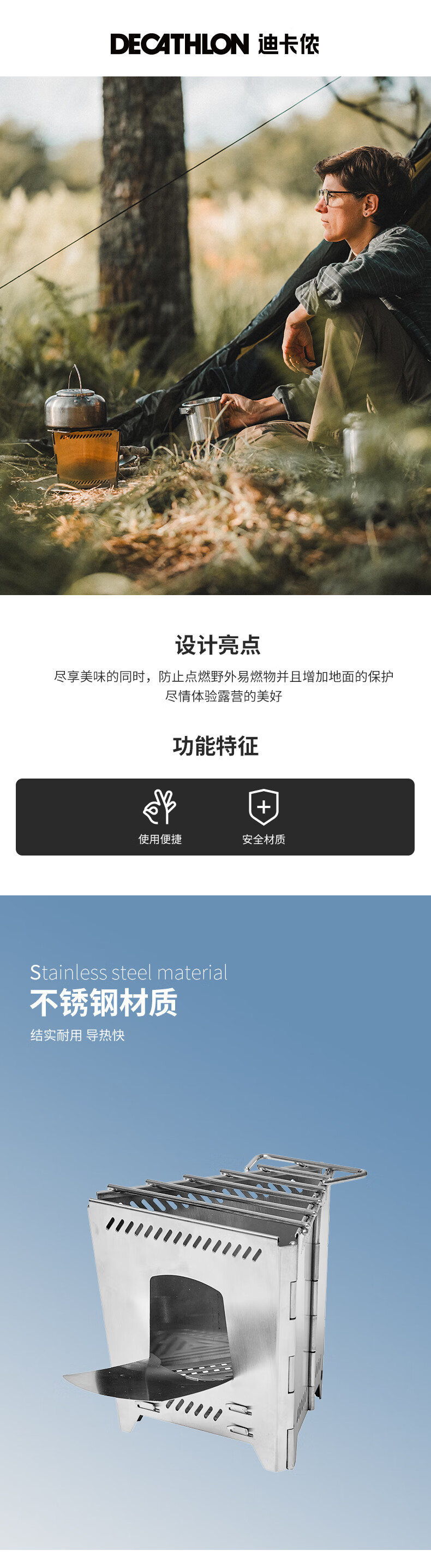 迪卡侬户外便携灶露营迷你可折叠小型炉子家用火炉烧柴OVHU 炉子(煮沸1升水仅需10分钟)