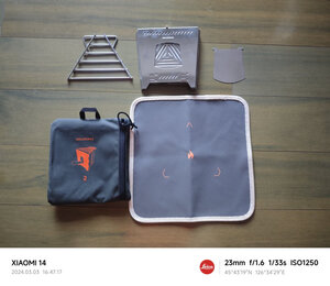这个炉子外观紧凑,薄薄的一个小袋儿,里边还带有防火布,非常紧凑。实际效果还需使用后再评价。不过做工非常出色,所有边角都圆润。