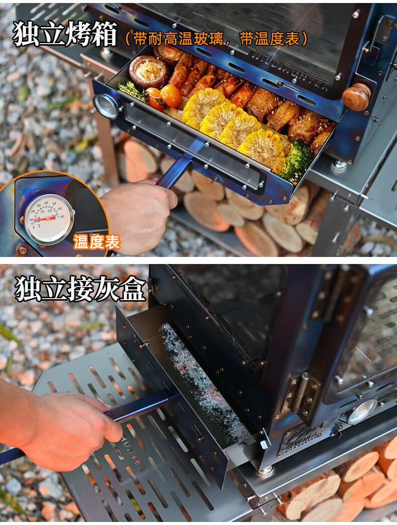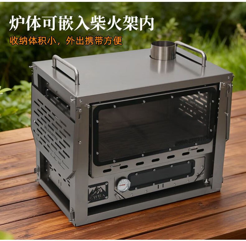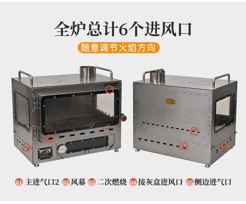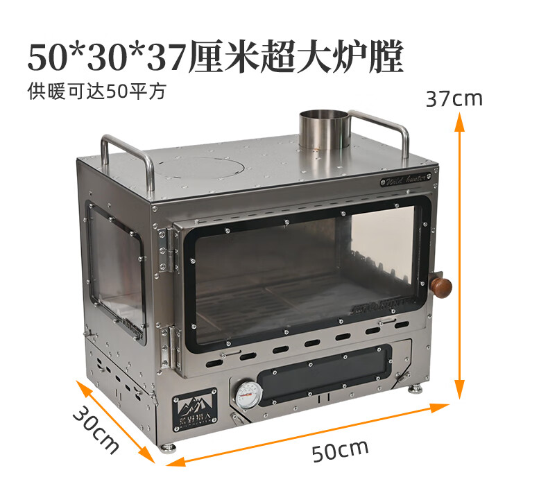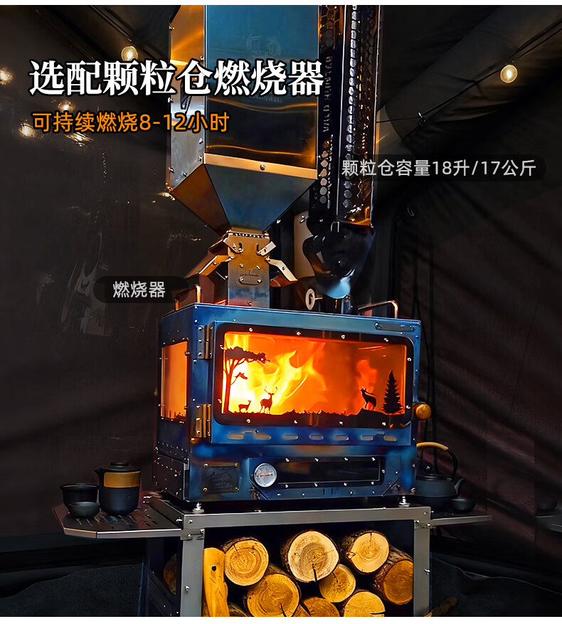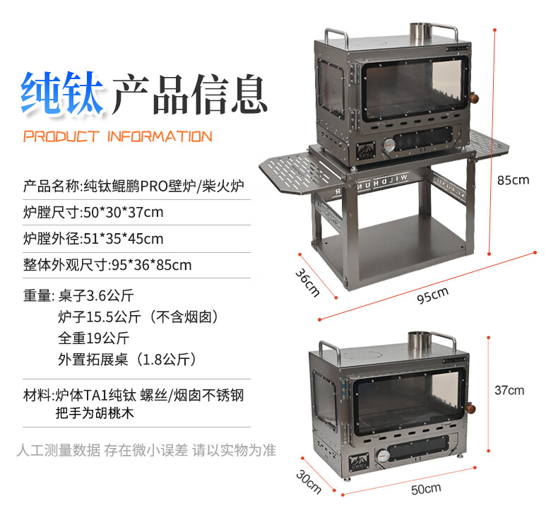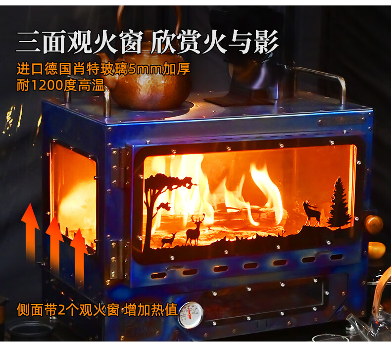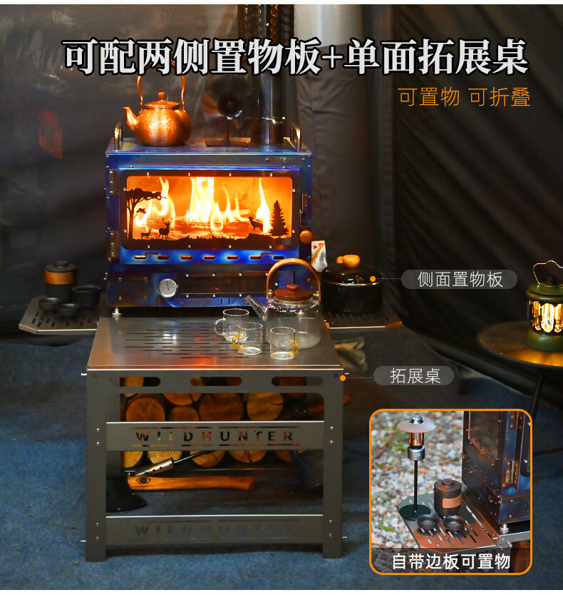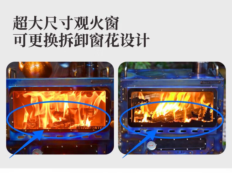 荒野猎人纯钛大壁炉3面观火取暖户外野餐柴火灶轻量露营帐篷颗粒柴火炉 (纯钛)鲲鹏Pro 大壁炉--标配