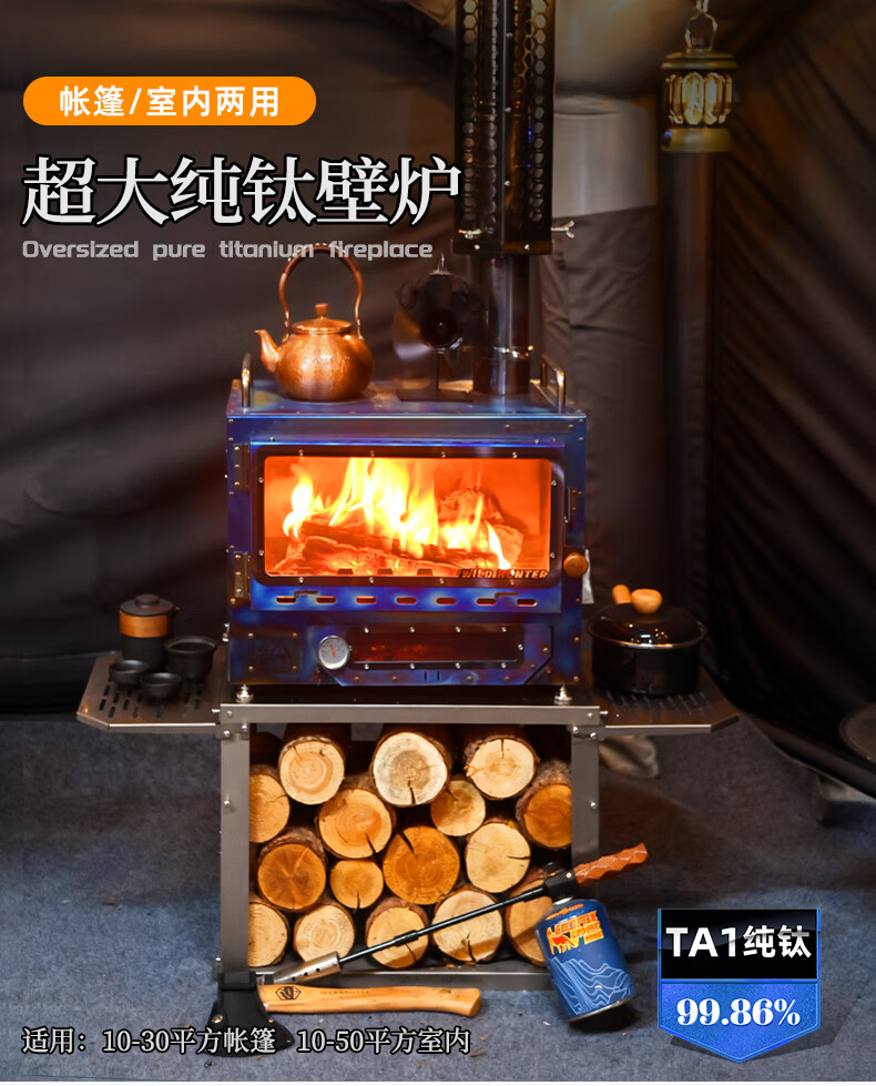 材质是纯钛的,很轻便,户外露营带着不费劲。取暖效果也不错,能覆盖挺大的面积,在帐篷里用特别合适,还能用来煮茶做饭,功能超全,体验感拉满,推荐给喜欢露营的朋友们~