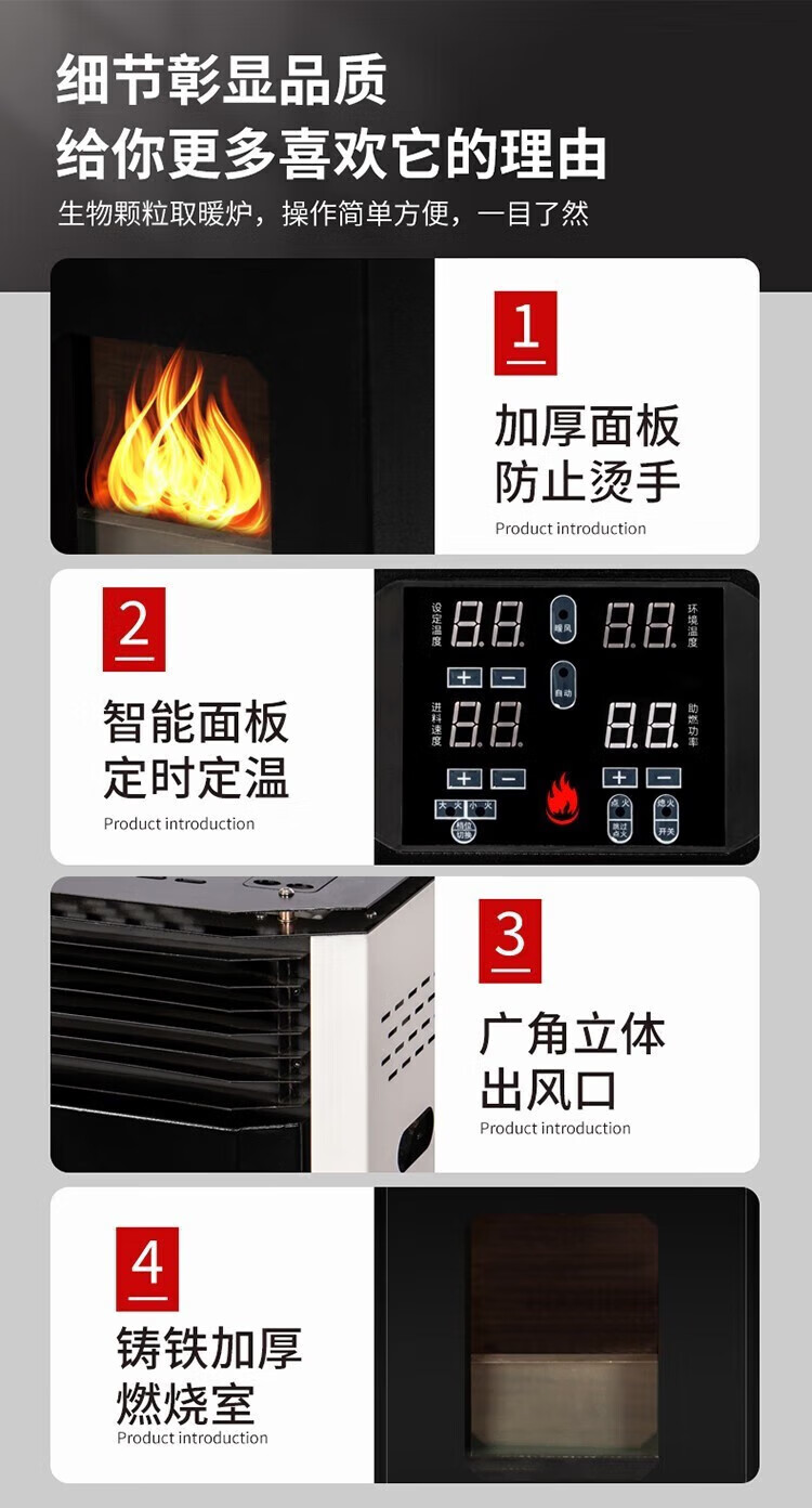 猎钢狼【包邮到家】全自动生物质颗粒取暖炉家用室内风暖无烟节能环保 新款100型可烧水【60-100平】可供暖