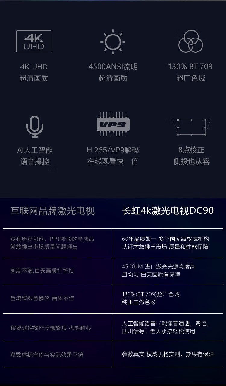 长虹红太阳长虹DC90 DC95激光电视影院级4K会议办公教学商务 主机+黑栅抗光硬屏150寸