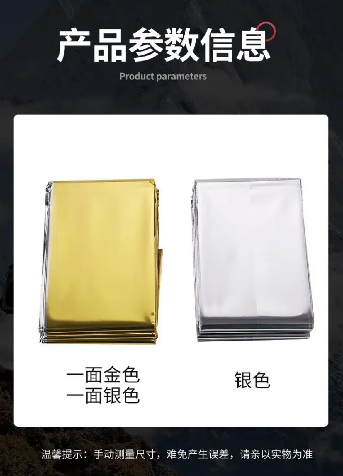 户外急救毯加厚生存保命救生毯防失温自救野外求生保暖应急毯装备 金银双面10个 大号210*160cm