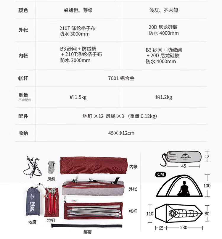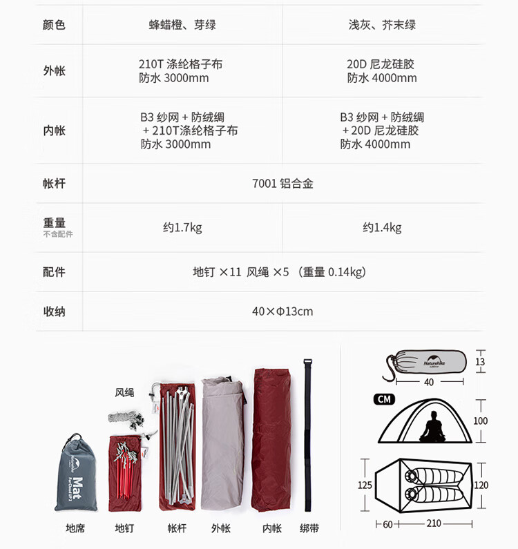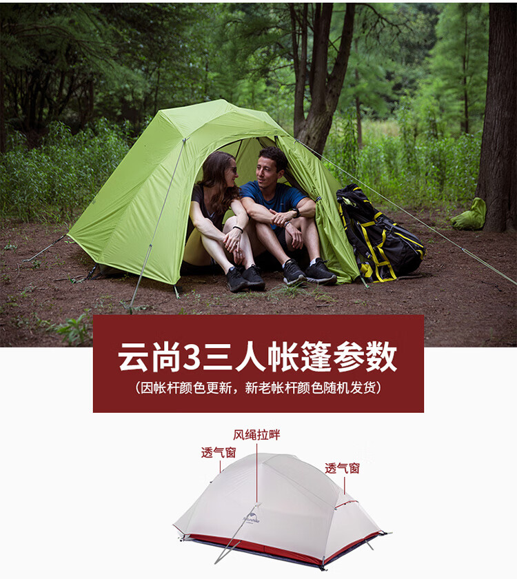 东西是真的好,地钉好,帐篷杆子好,内外帐都满意,有五个帐篷了,这个作工是最好的,挪客加油,快递给力