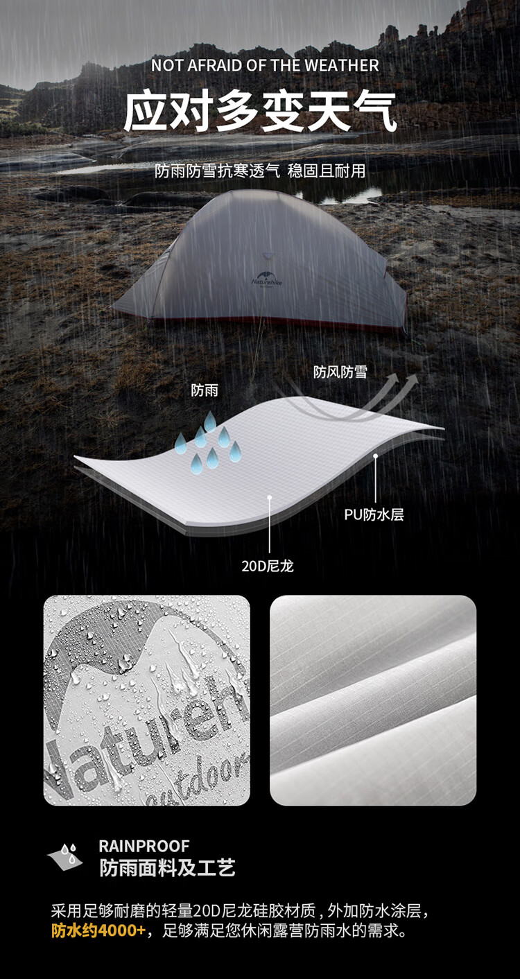 这是我第一次正式买帐篷⛺,看了很多品牌进行对比。因为我平时喜欢徒步爬山,也想找一个轻量化的帐篷。 断断续续看了一个星期的品牌,型号对比,最后选定挪客的。 安装方便,轻量化,其实两人的帐篷,一个人睡的时候就刚刚好。不过总体很满意,希望质量能陪我走更多的大山