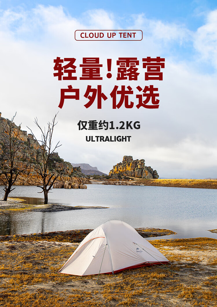 Naturehike挪客户外登山轻量云尚帐篷123人野营防雨防风徒步露营野外帐篷 云尚1/210T/蜂腊橙 配防潮地布