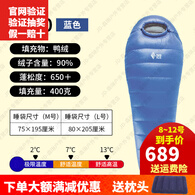 黑冰羽绒睡袋B400\B700\B1000\B1500户外露营超轻野营鸭绒可拼接情侣 新标准-B400蓝色 L-身高174以上