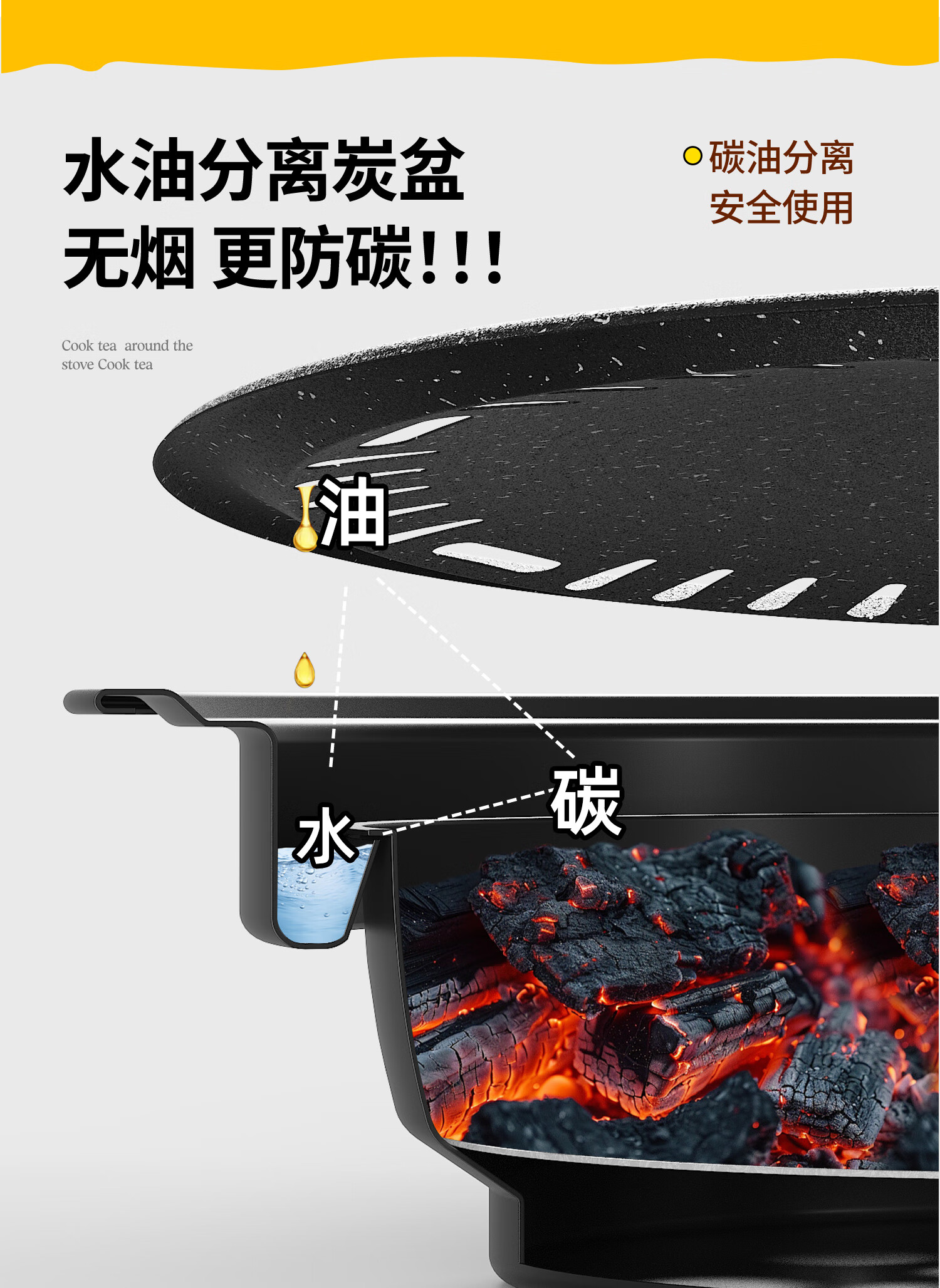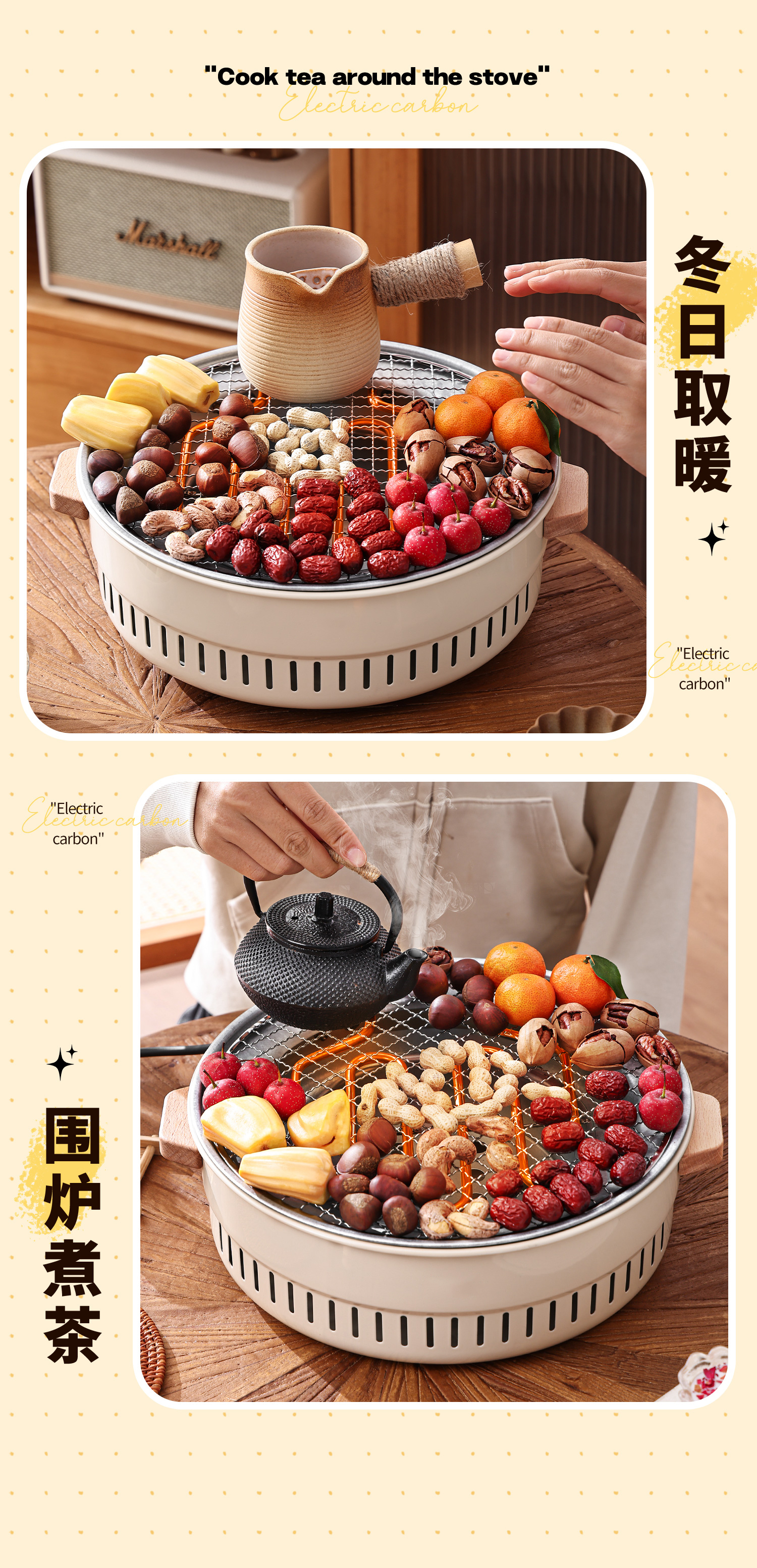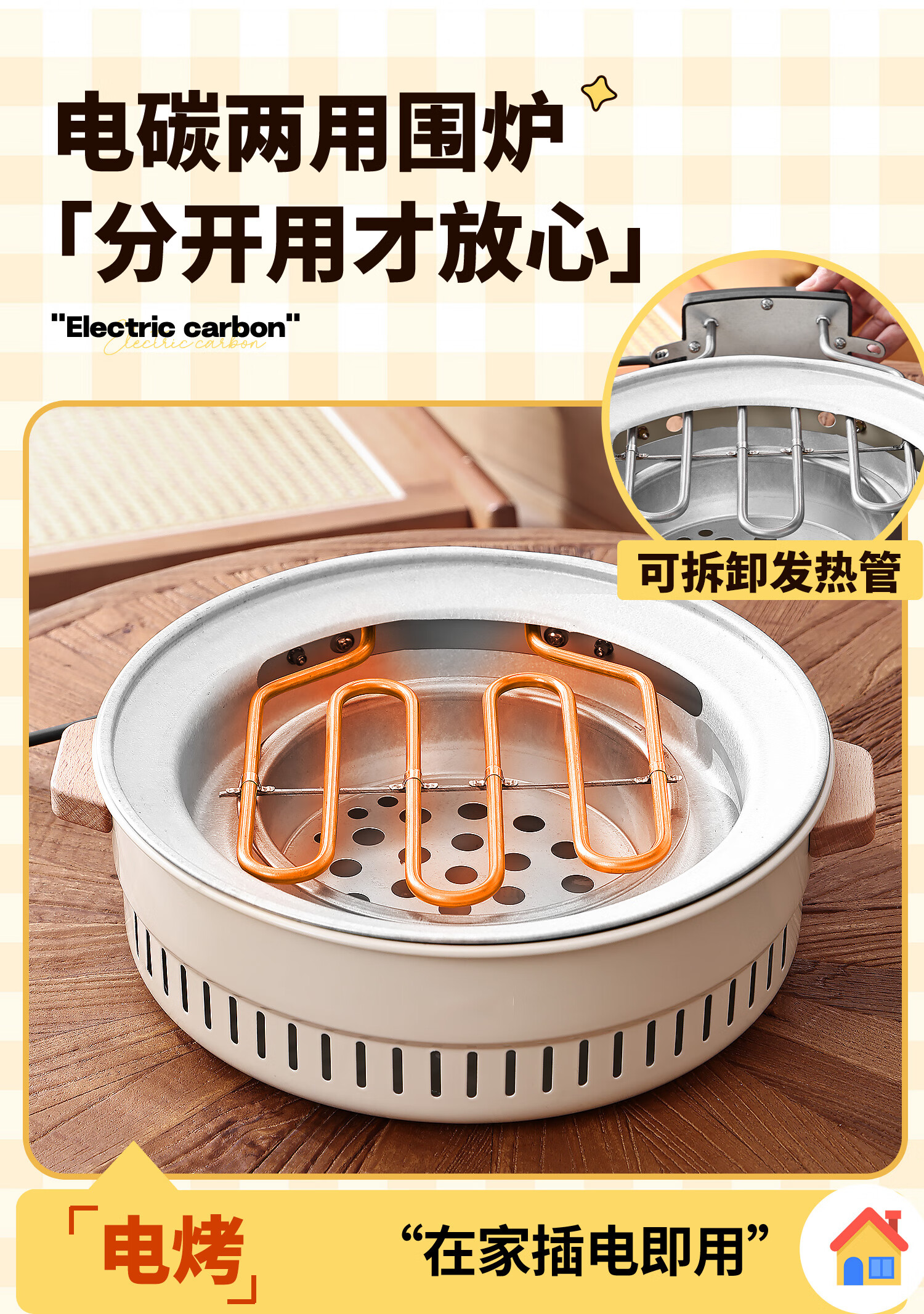 文枝围炉煮茶套装电碳两用烤炉电陶炉室内家用取暖烤火庭院户外烧烤 【烤网+烤盘】电碳两用款