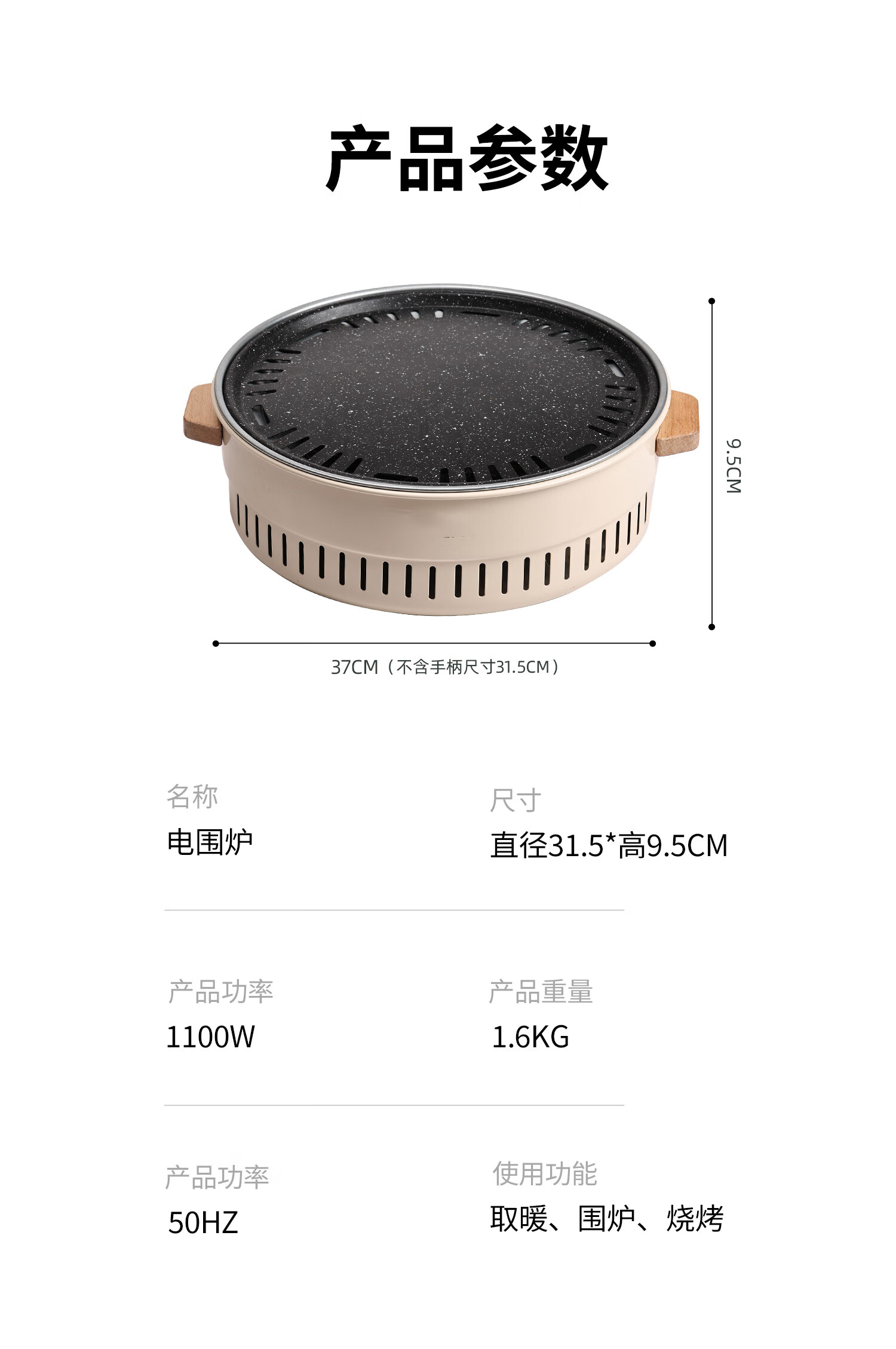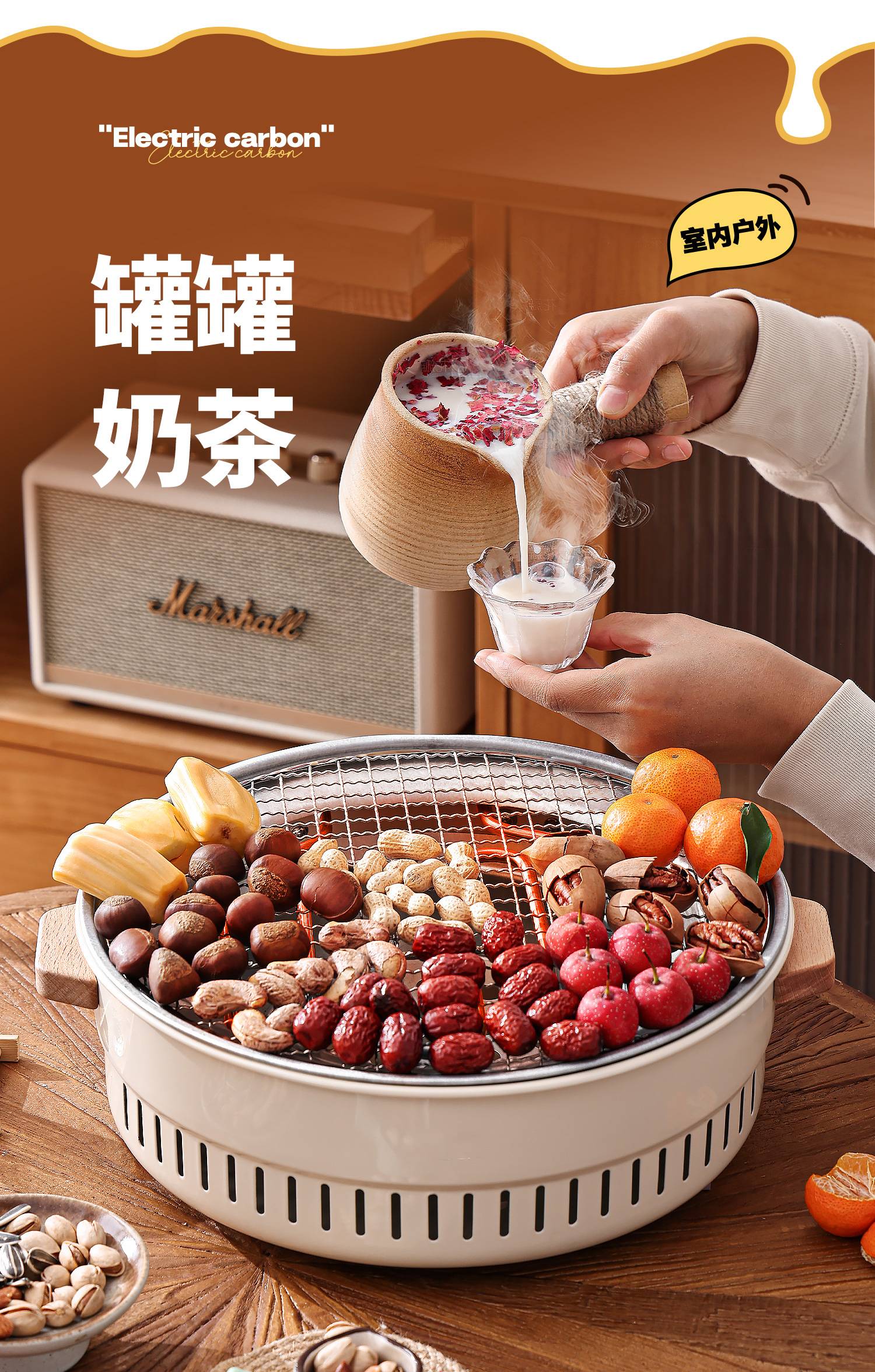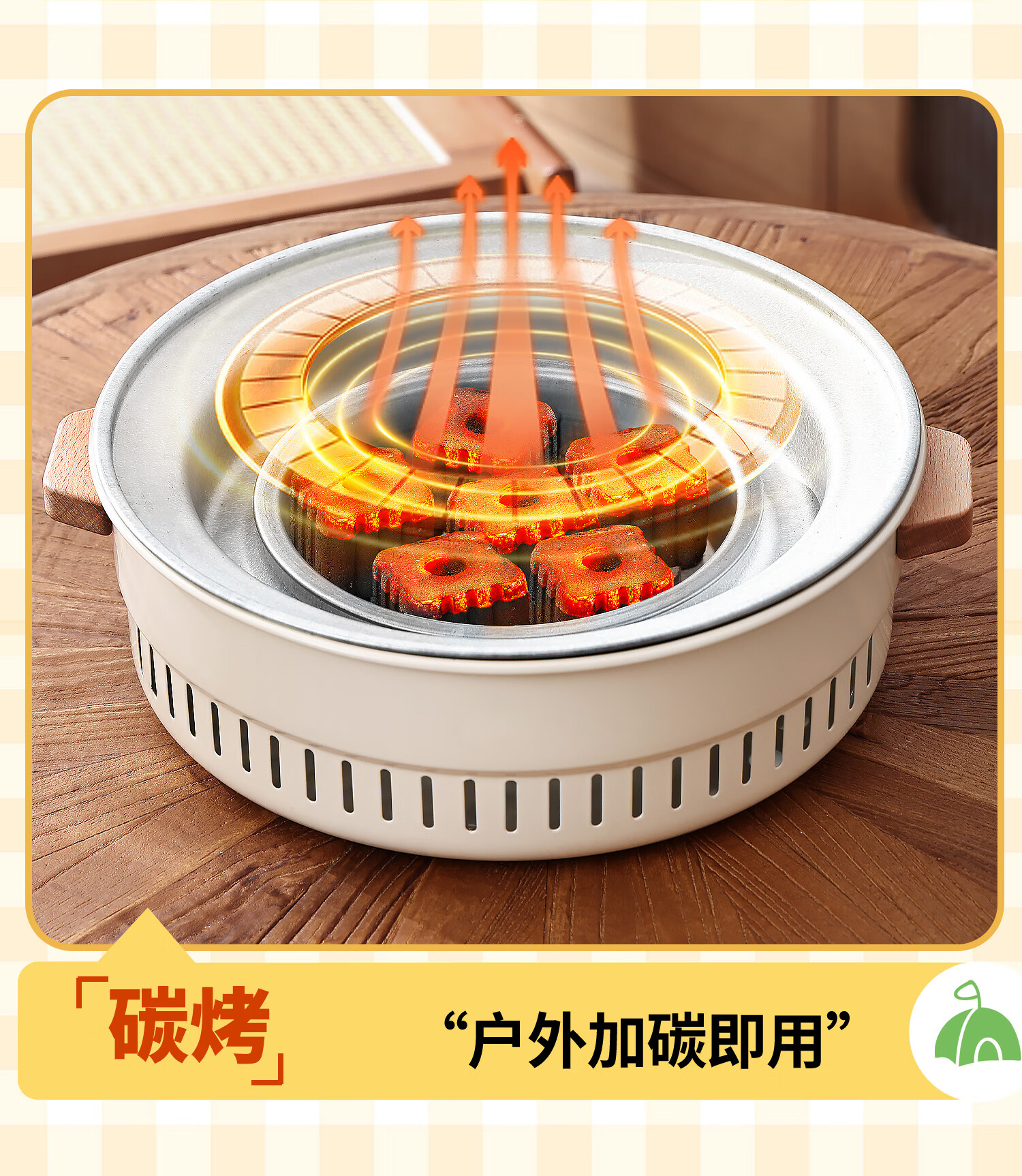 文枝围炉煮茶套装电碳两用烤炉电陶炉室内家用取暖烤火庭院户外烧烤 【烤网+烤盘】电碳两用款