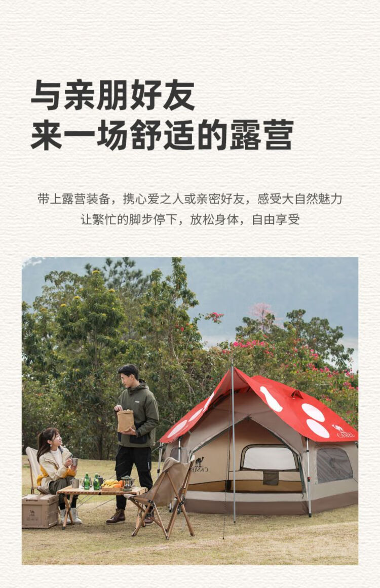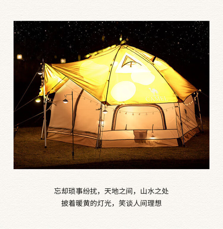 骆驼户外精致露营蘑菇帐篷便携式涂银防晒防雨野餐自动帐野营装备 1J322C7728,柠檬黄