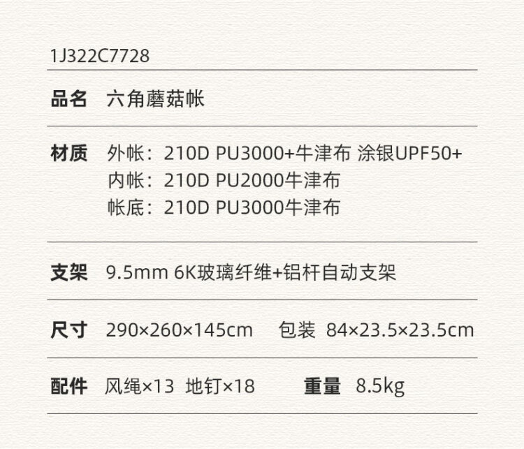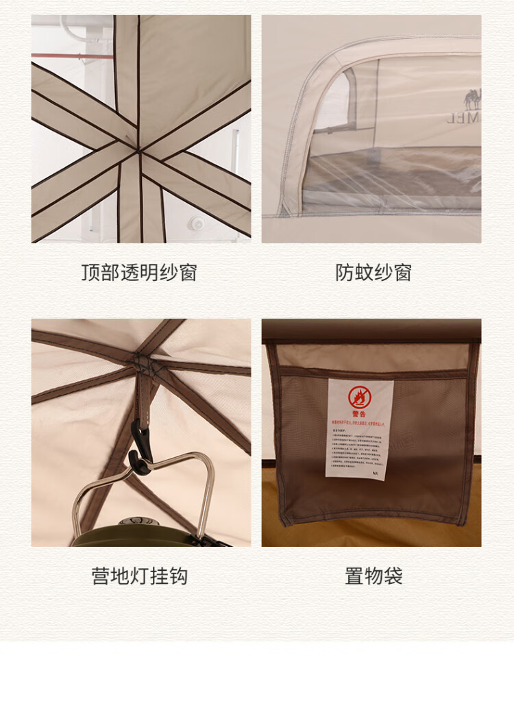帐篷很大,结实耐用,又漂亮。出去露营过夜都很棒。