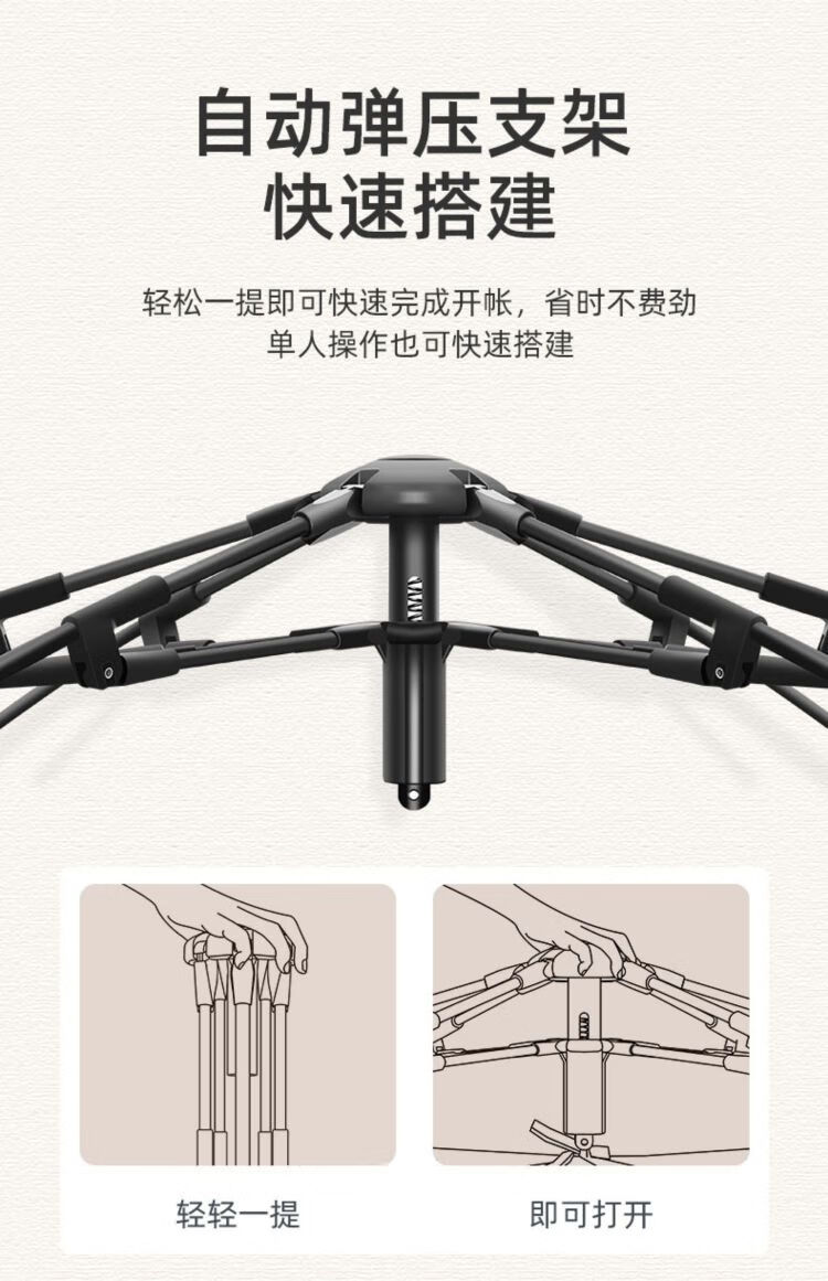 露营帐篷蘑菇屋便携折叠加厚户外野营野餐公园自动蒙古包帐篷 柠檬黄,1J322C7728限时特惠