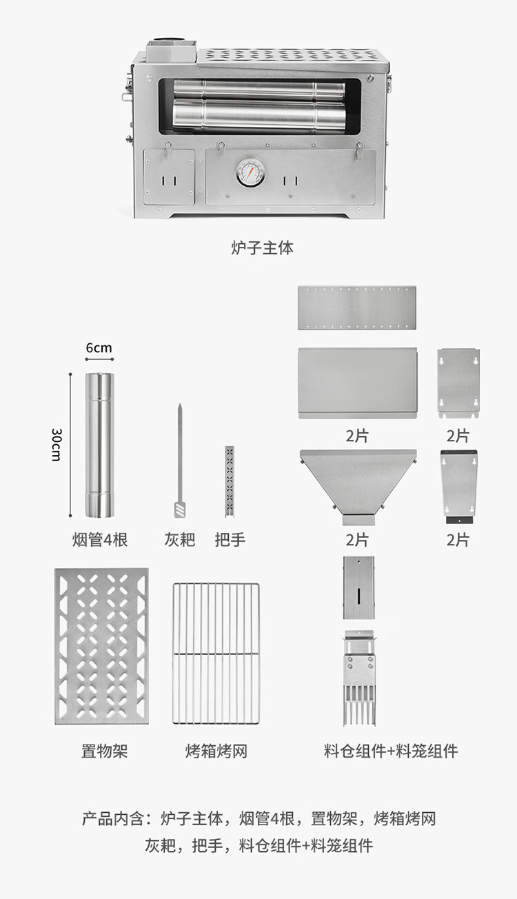 不错,做工精细,还没开火,应该会很棒的 就是烟囱数量少了点,还要自己再配弯头,防水烟囱