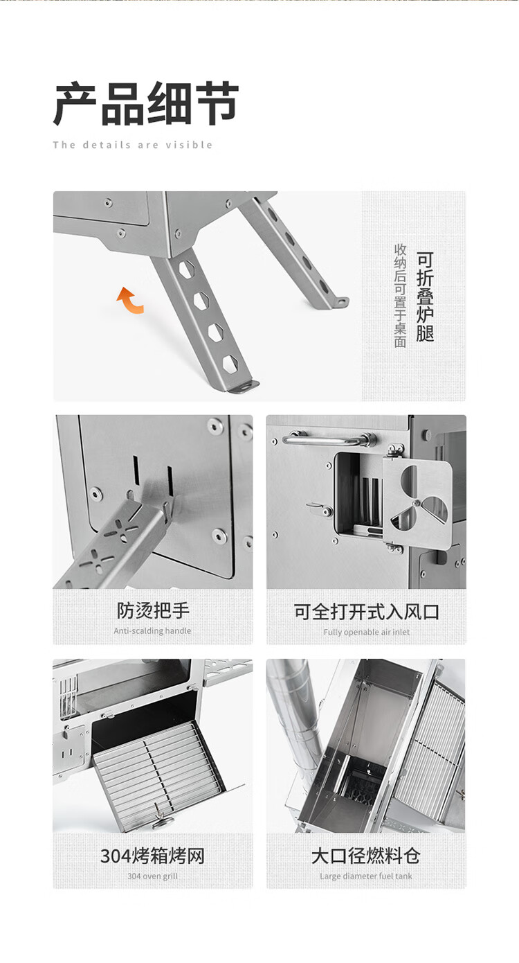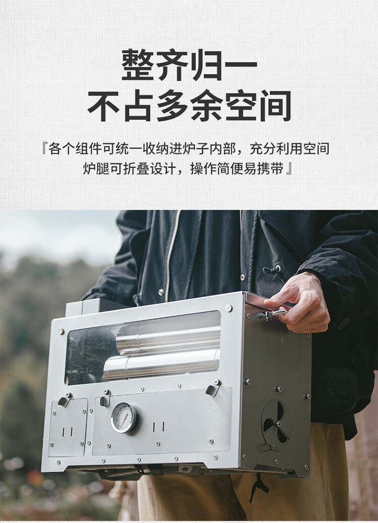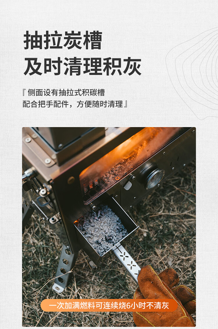 野之旅野之旅夜鹰M8户外多功能柴火炉便携式折叠露营帐篷取暖烧烤炉烤箱 M8原色烤箱款+扩展桌