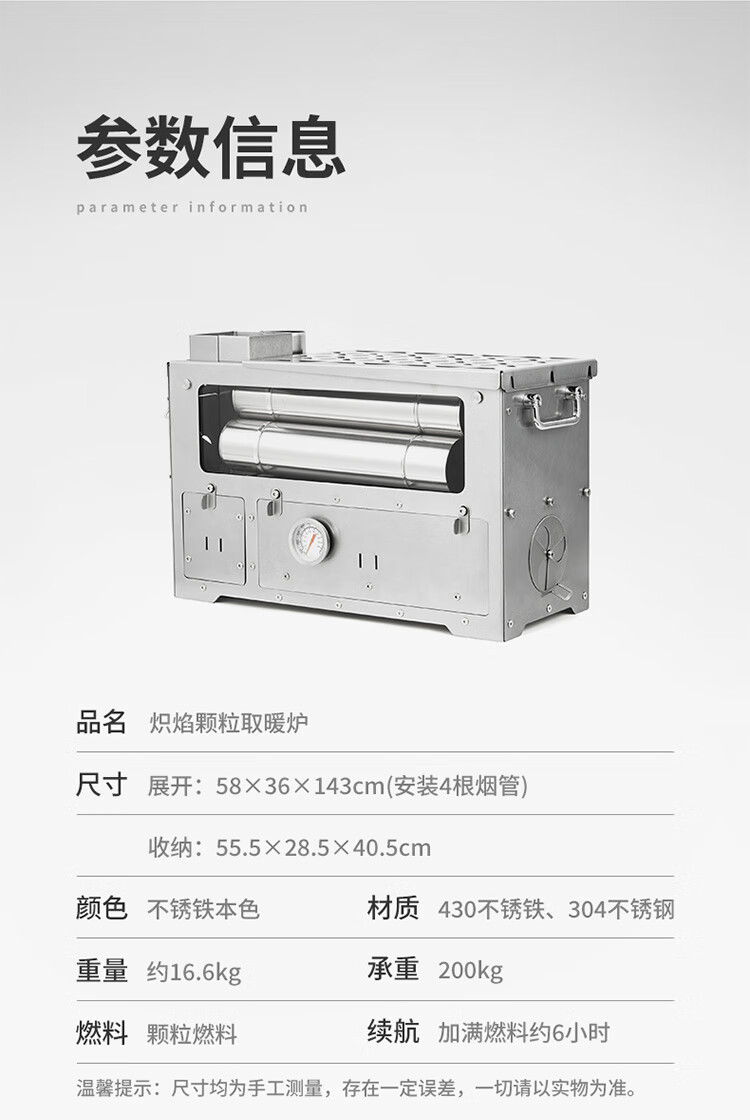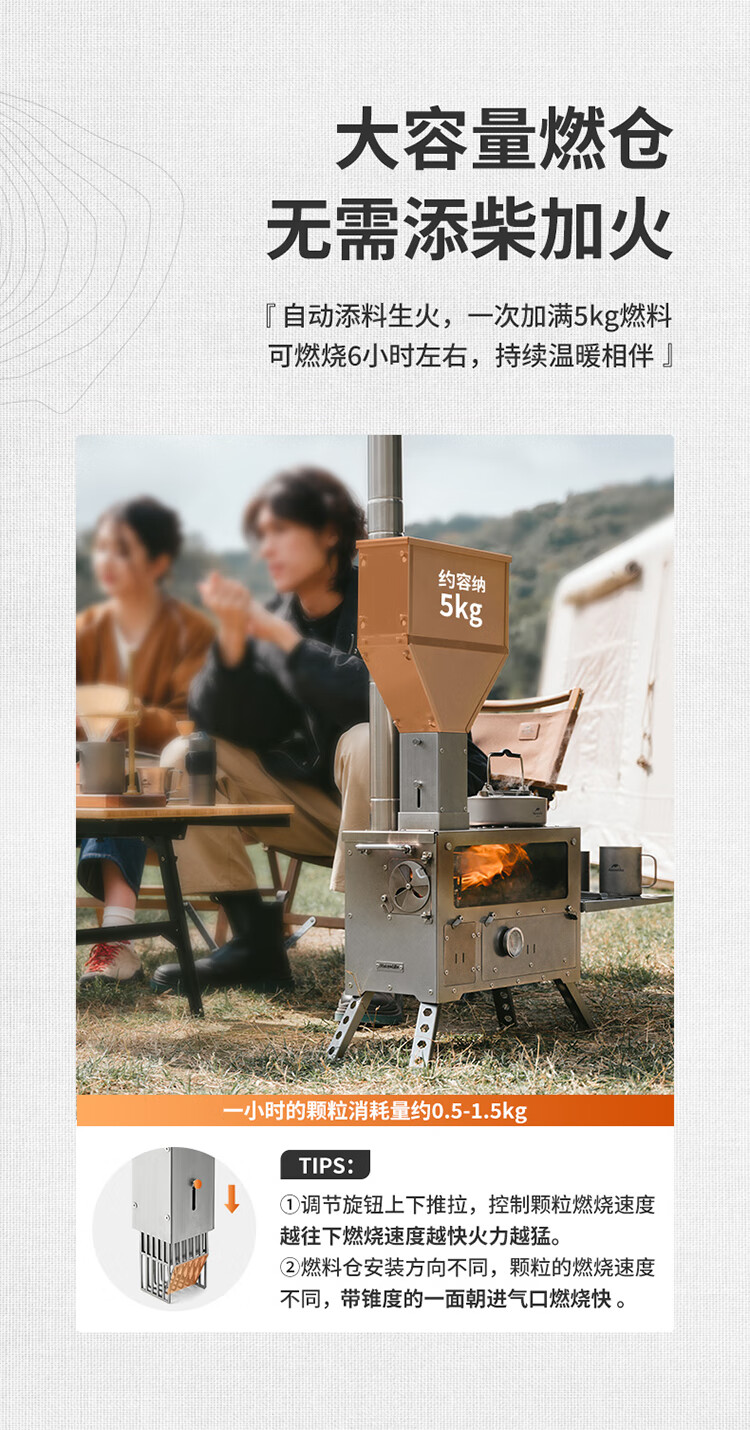 Naturehike挪客炽焰颗粒取暖炉便携户外露营帐篷取暖器野营营地野餐炊具炉具 防烫管-不锈铁本色