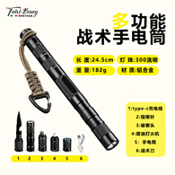 塔西伯利 TOIXI BRORY多功能战术手电筒便携防身笔户外求生装备用品防狗狼神器强光充电 黑色【多功能战术手电筒】