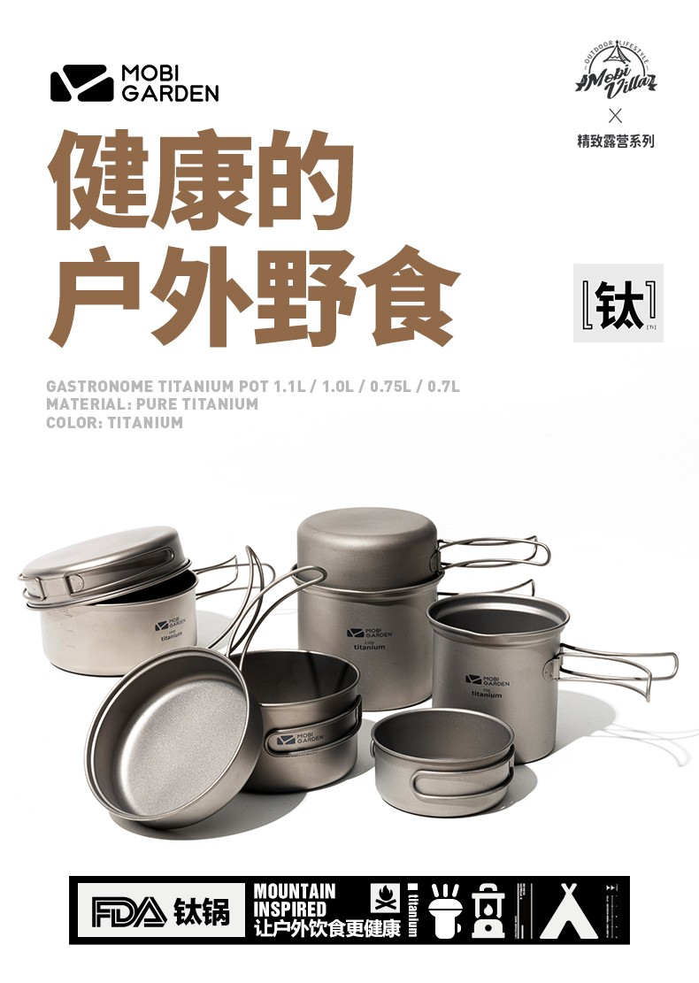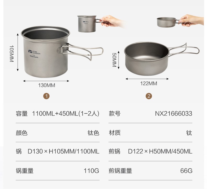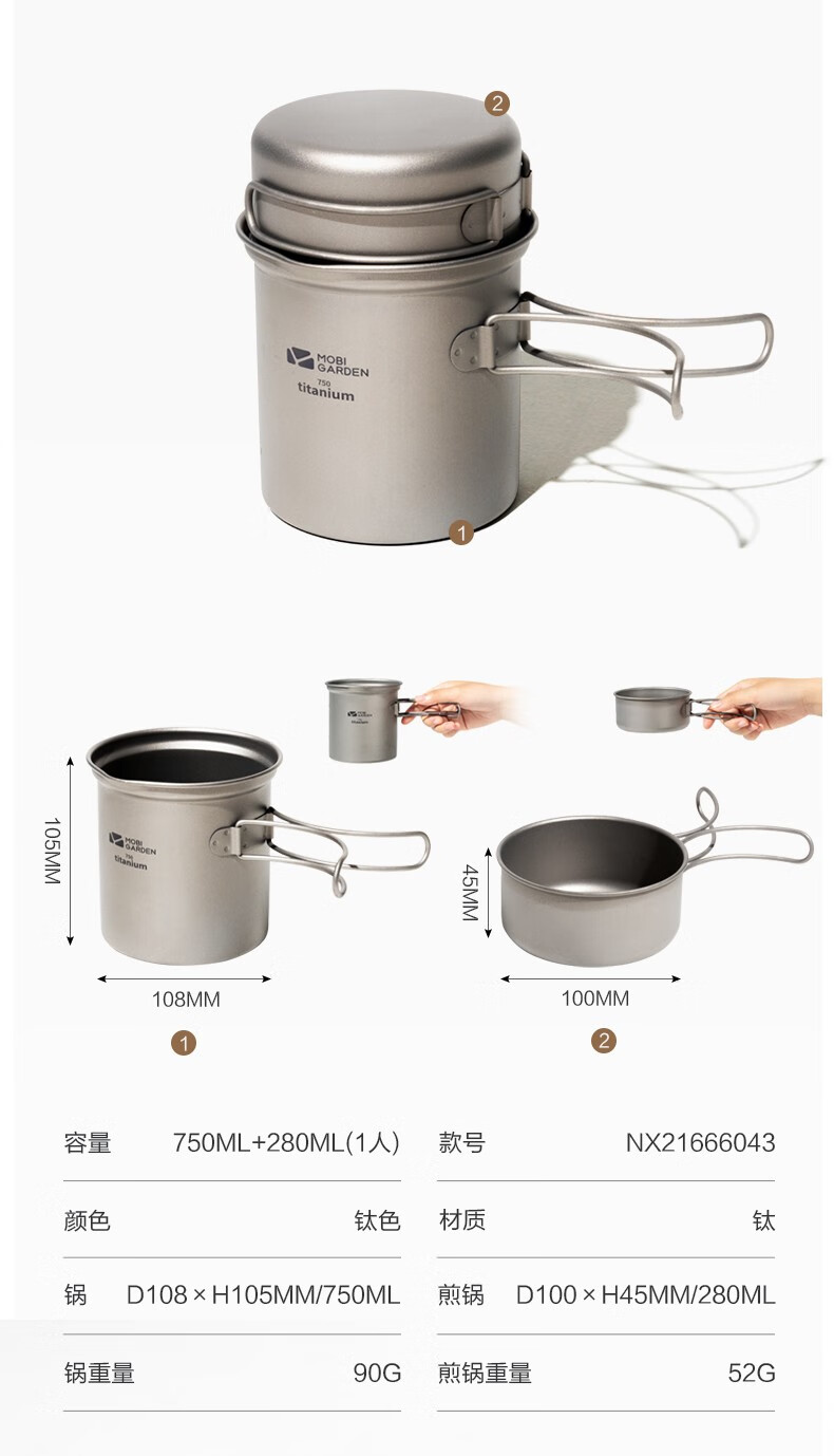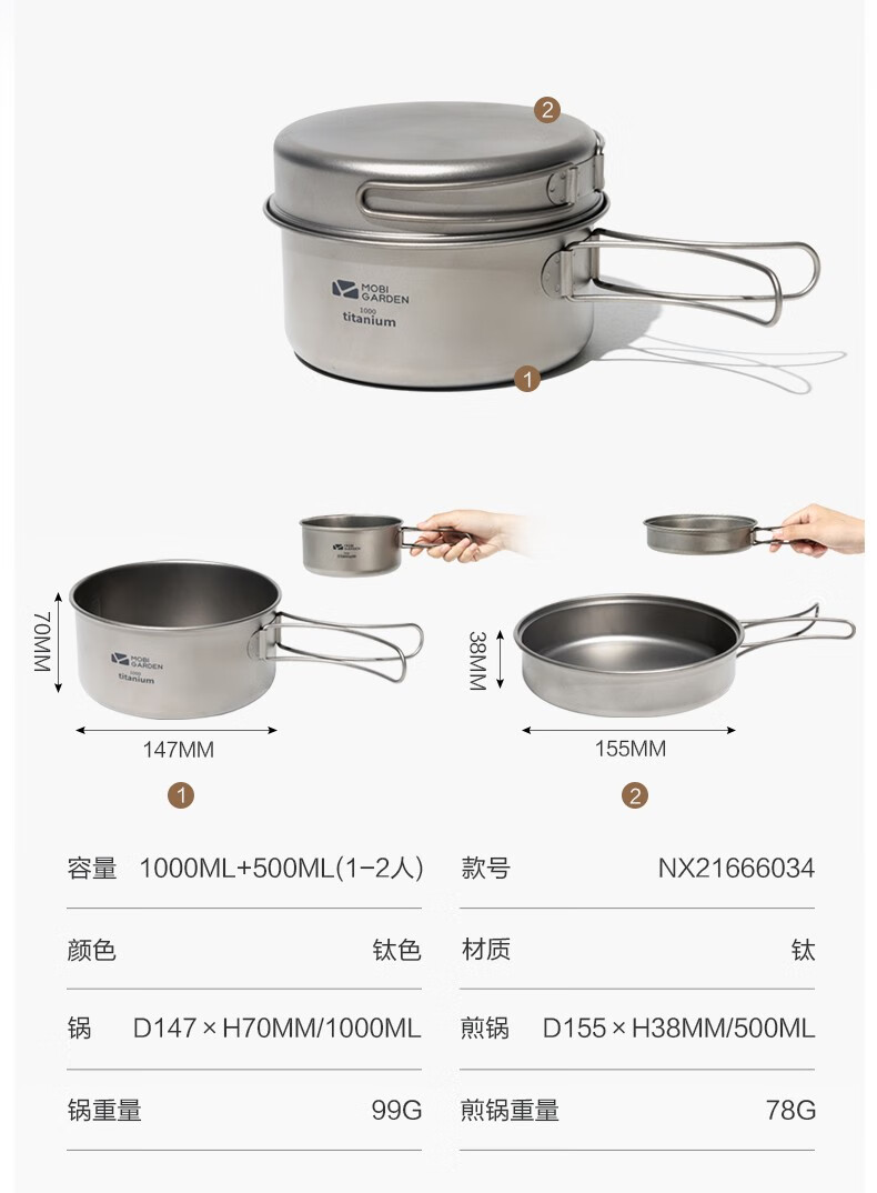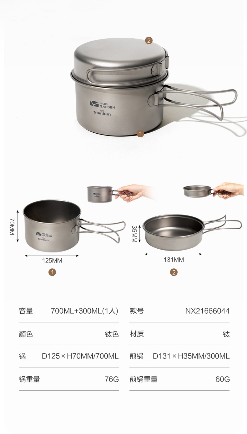牧高笛钛锅户外露营烧烤野炊可折叠纯钛套锅蒸锅轻量便携野营套锅锅具 钛锅(0.7L+0.3L)