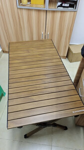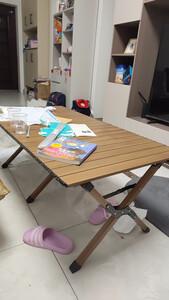 第一次买黑鹿的产品,还是挺满意的。这个蛋卷桌的大小和重量都OK,之前一直用的挪客的40×60折叠桌,铰链已经断了一个,只能用绑扎带捆起来,希望这个不会出现这种问题。这个颜色好看的。