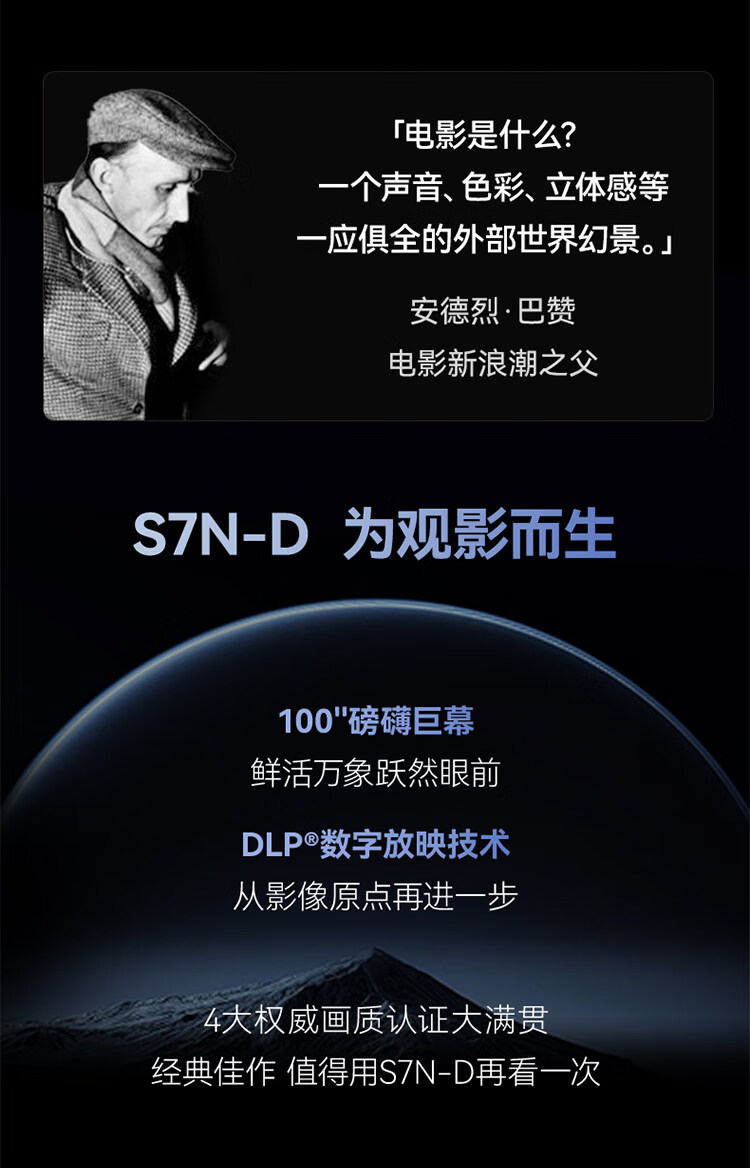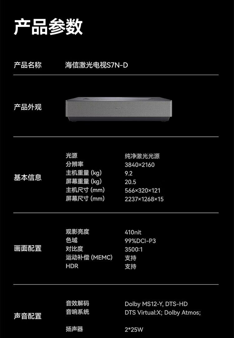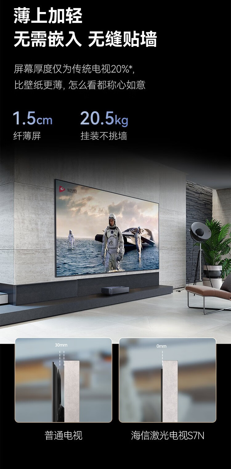 海信激光电视 S7N 100英寸 家庭影院 大屏护眼电影院同源原片原色投影 海信S7N(100英寸)