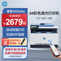 惠普3303fdw/m479fdw/4301fdw A4彩色激光打印机一体机自动双面复印扫描传真 手机无线大型办公商用 3303sdw【无线三合一+自动双面打印】 套餐二:标配+加粉硒鼓1套+4瓶粉【三年保修】