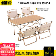 原始人户外折叠桌铝合金蛋卷桌露营桌子野餐桌椅便携式装备野营野炊 中号铝合金桌+木色经典卡其*2