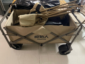 原始人(The Primitive)露营推车营地拖车户外折叠超大野营手拉车遛娃小推车野餐车桌板 【后开款】加大款卡其+折叠桌板