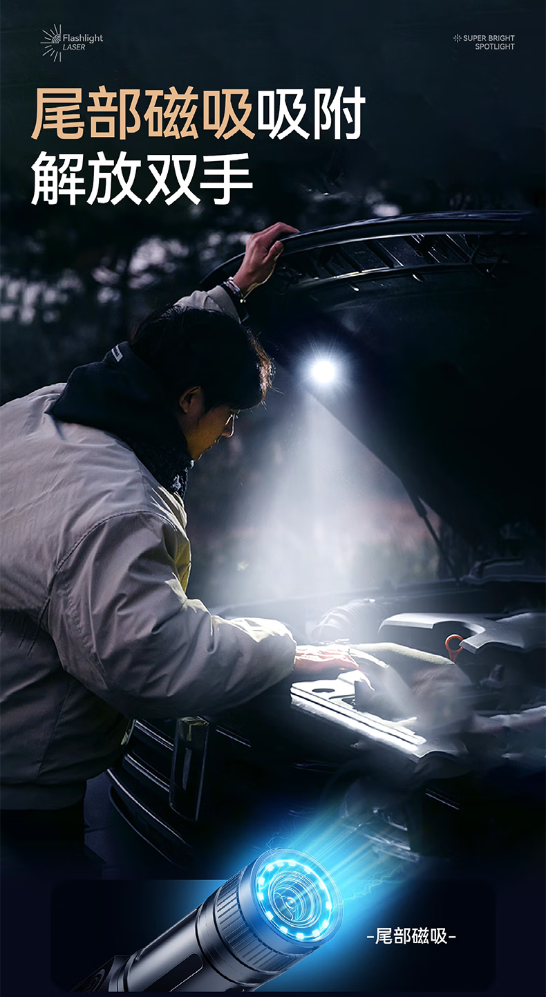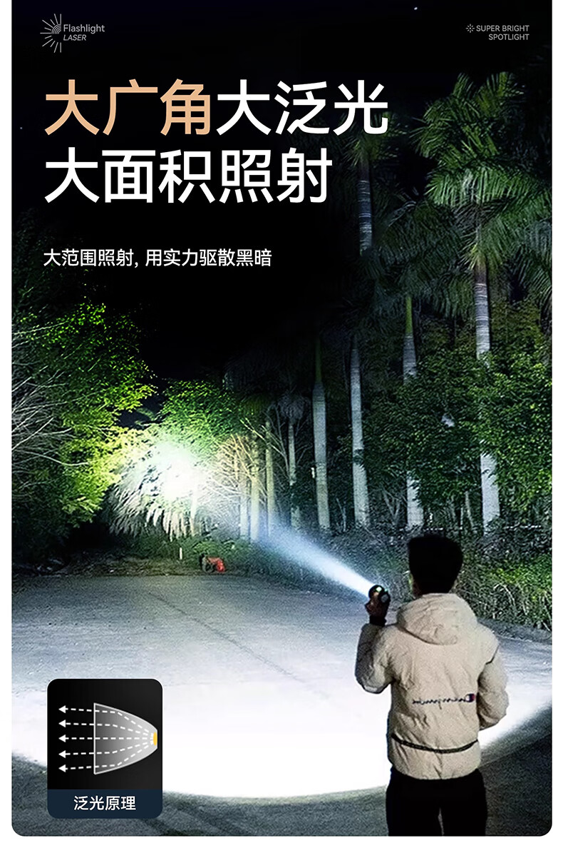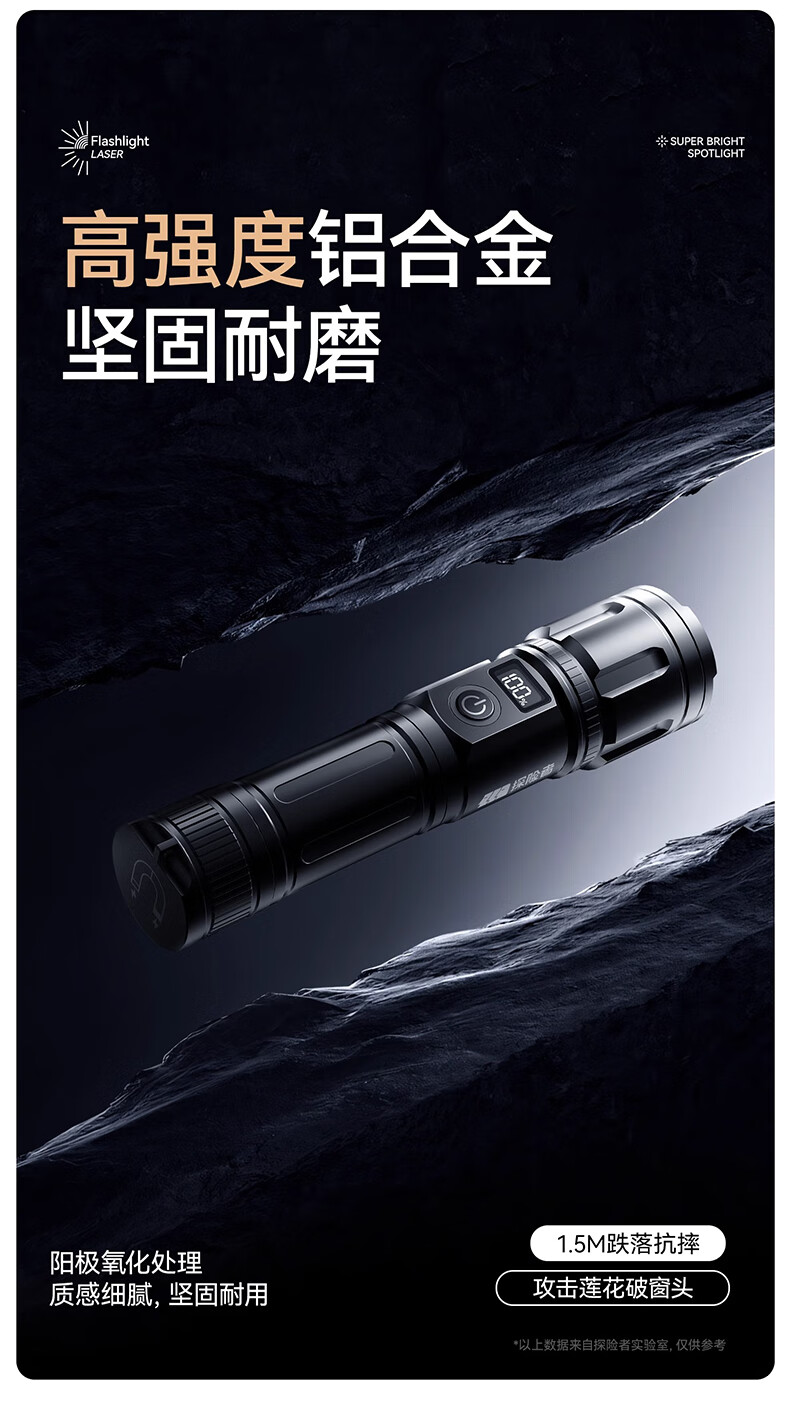 货收到啦,照的很远,亮度强大,功能多样,铝合金材质,目前用的不错
