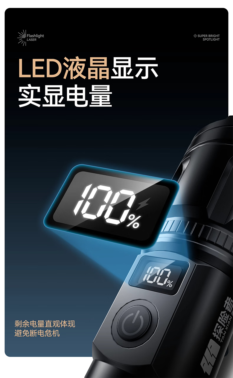 探险者手电筒强光充电户外登山超亮远射超长续航大容量应急家用户外照明 镭射P50灯珠-四挡调节