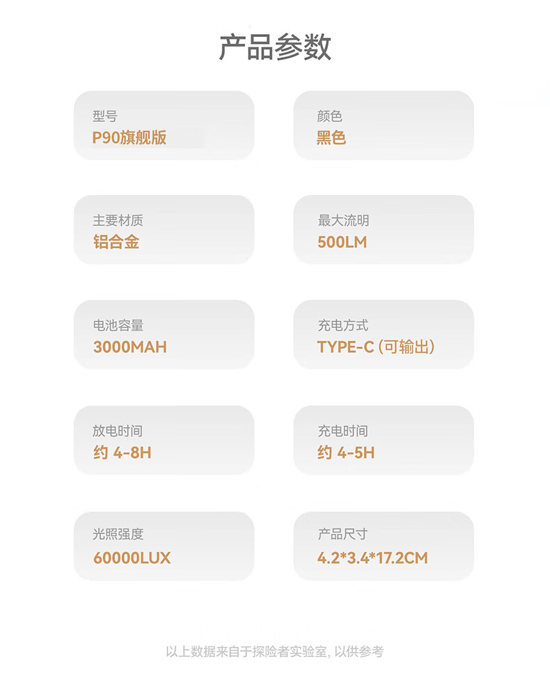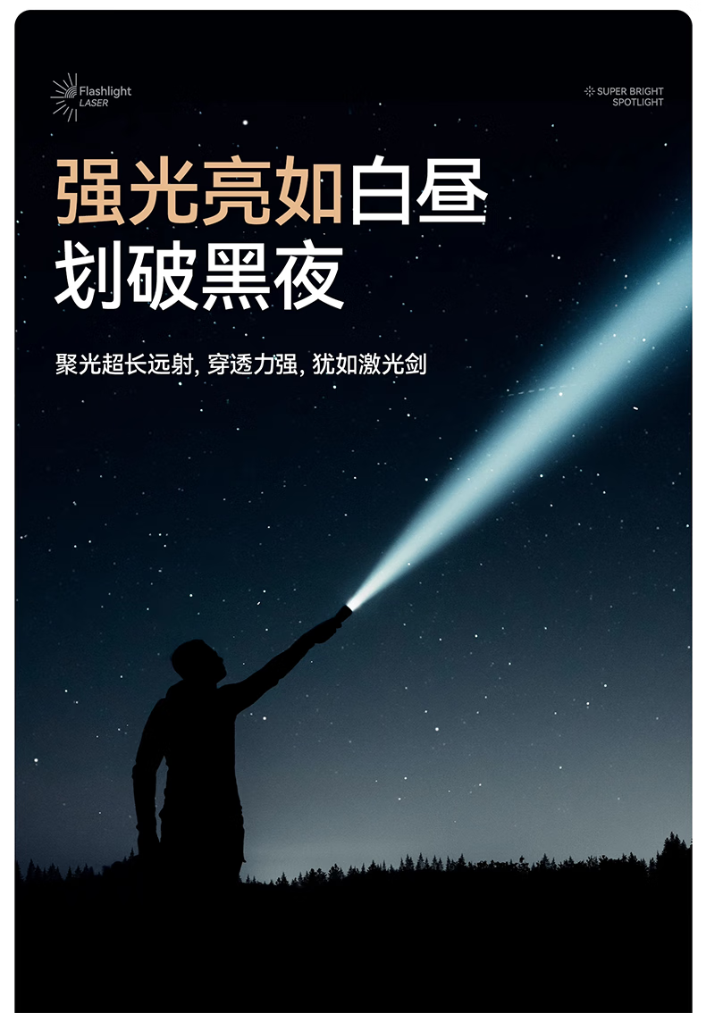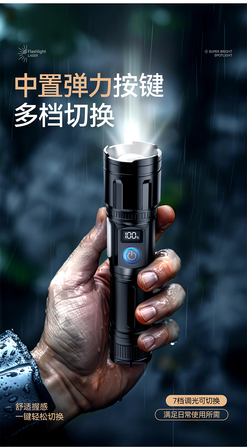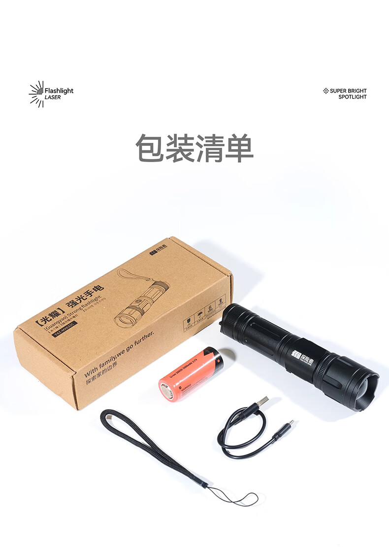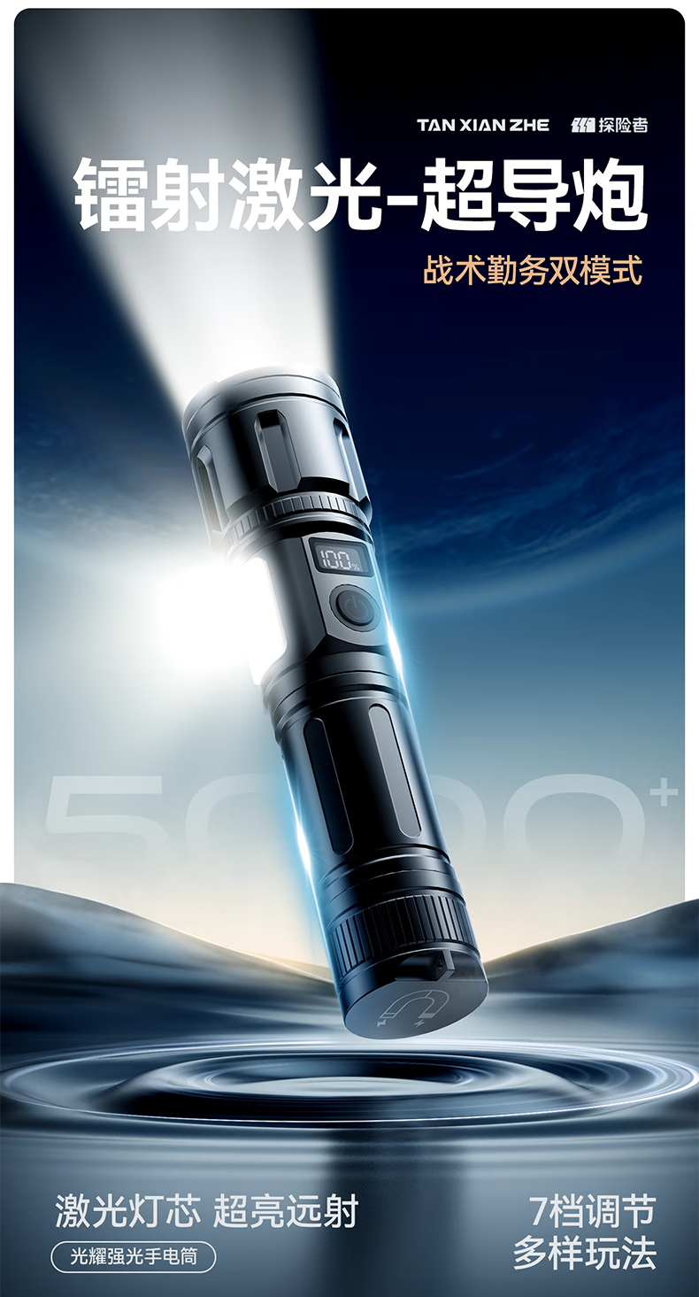 探险者强光手电筒收到了,包装完好,握感舒适,光照强度亮,续航时间持久,小巧便携性强,支持变焦调节,适合各种户外环境,照射范围广,做工精致,性价比高,很满意。