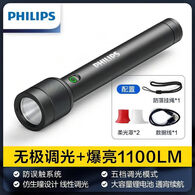 飞利浦手电强光超亮可充电家用户外远射长续航应急便携手电 [SFL8286]无极调光+柔光罩或