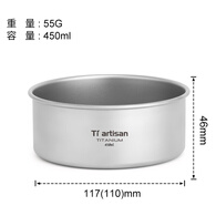 Ti artisan钛工匠户外野营纯钛单人便携防烫隔热单层钛碗组合装硅胶碗野餐碗 Ta8215大号450ml【无硅胶】