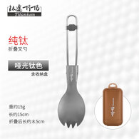 钛途(TITO TITANIUM)纯钛叉勺折叠款99.5%钛合金家用户外野营便携餐具厨具叉子勺子 哑光-折叠钛叉勺-盒装