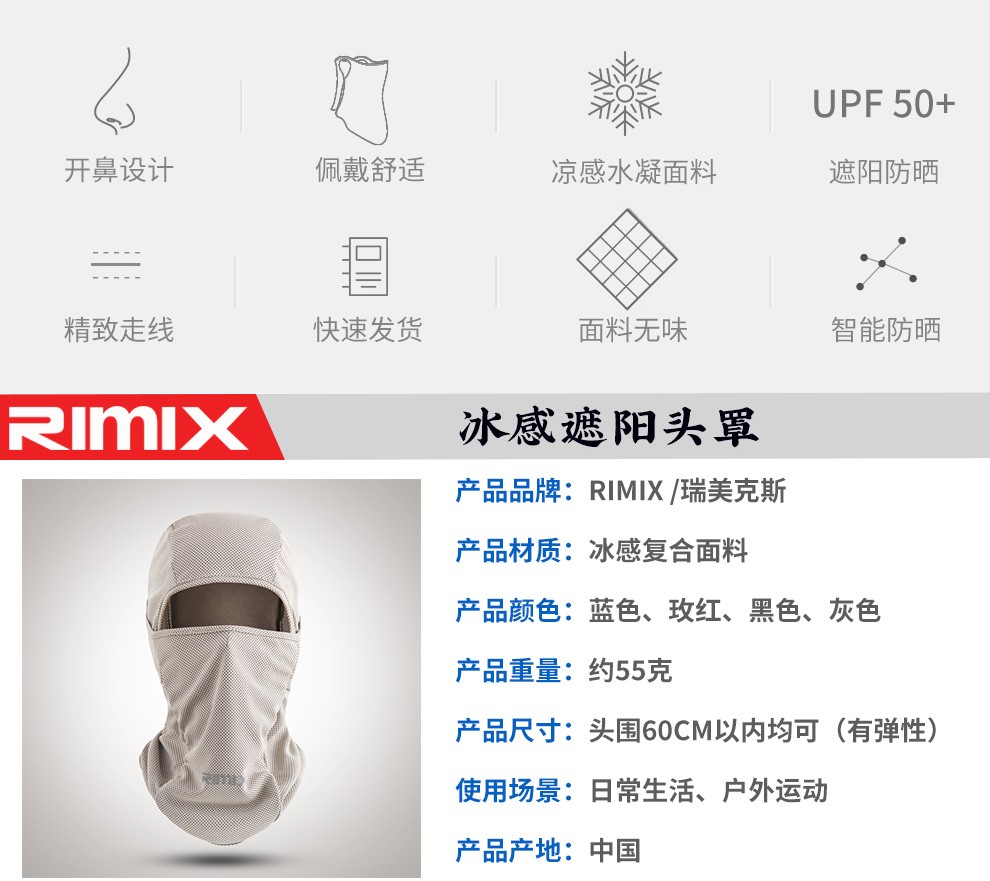 RIMIX冰丝防晒头套面罩防晒口罩夏季户外骑行钓鱼男女全护脸颈脖 冷感降温透气头套 灰色