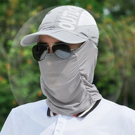 新术防晒帽男遮阳渔夫防晒凉帽面纱户外钓鱼折叠骑车防晒面罩遮脸帽女 男款【帽子+面纱】浅灰色