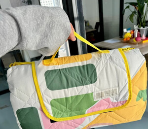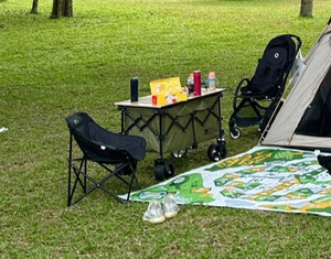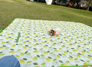 颜色买的比较素雅,显得很干净,⛺不沾草,底面防水设计,😊小孩使用很安心,非常好的野餐垫~