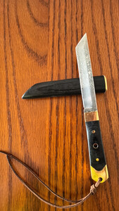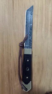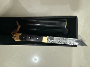 【食蚁兽】户外精品大马士革钢黑檀木鞘刀镜面高硬度锋利切水果 腐蚀款