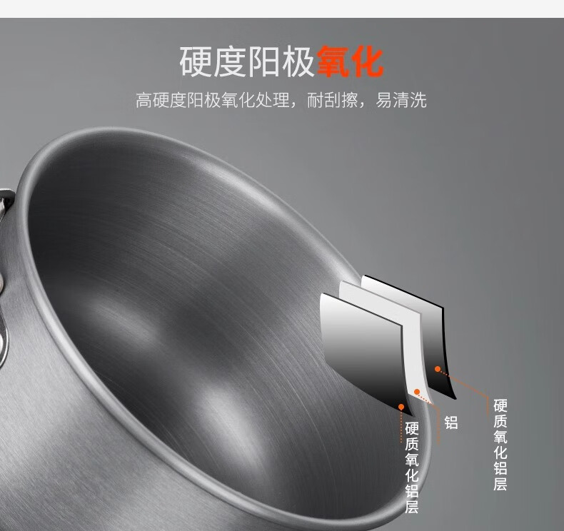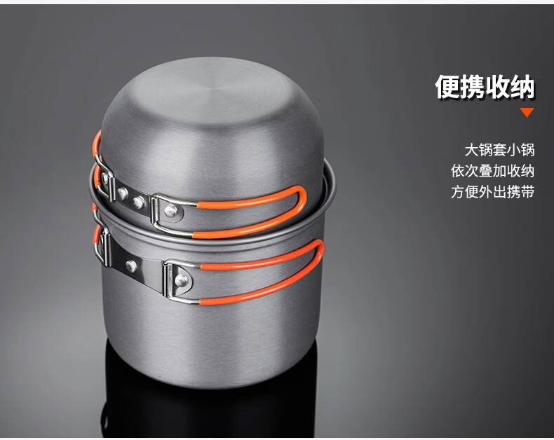 火枫208套锅露营炊具便携式收纳折叠锅具3-4人野营 【全套锅】深灰色