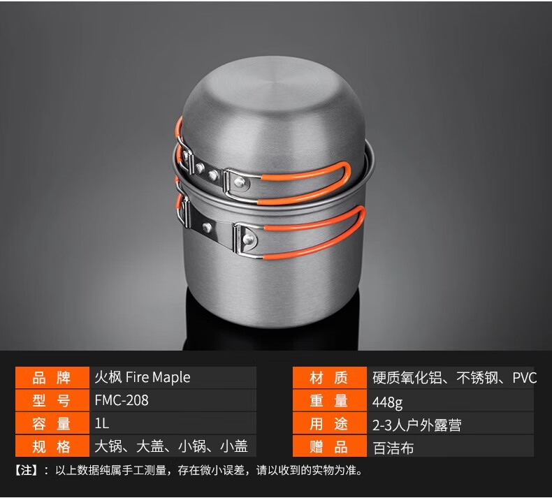 火枫(FIRE-MAPLE)野火204/206套锅户外锅具折叠收纳便携套装野营露营野餐用品套锅 FMC-203【适合1-2人】