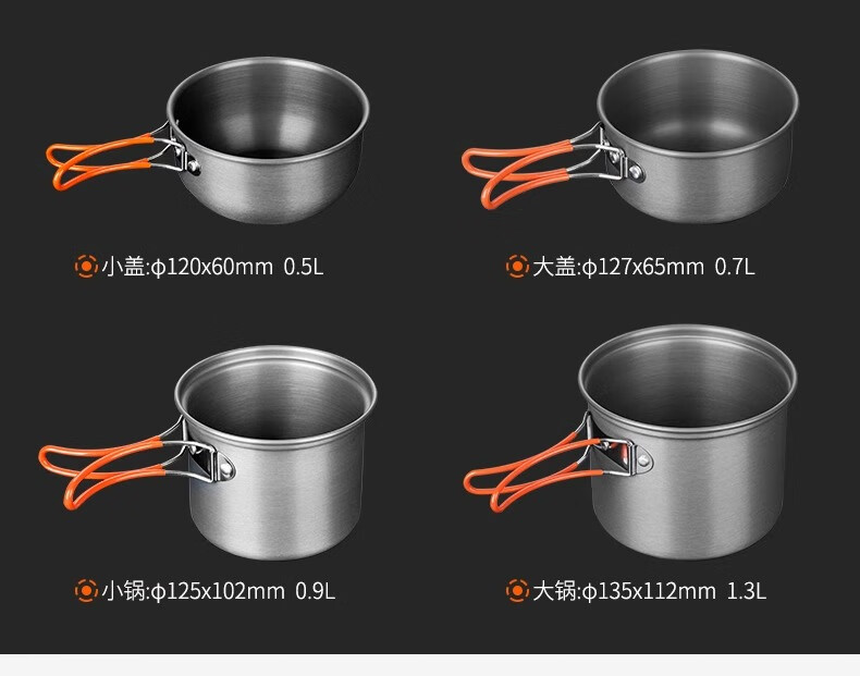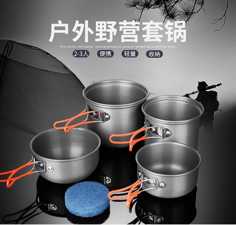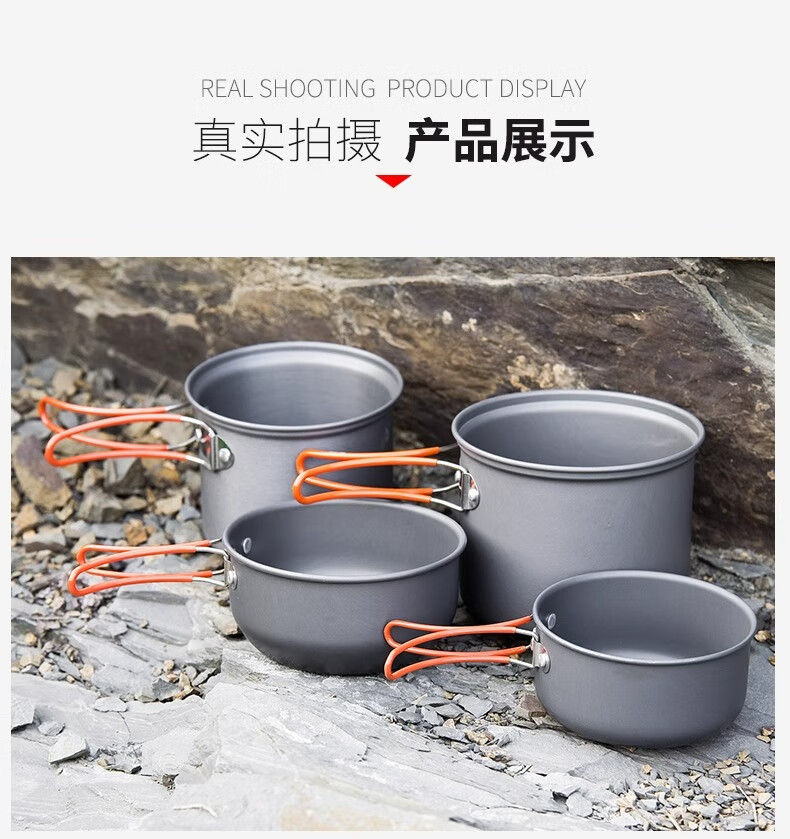 原始人露营炊具户外锅水壶煎锅装备便携野外野营套锅锅具用品 两锅一壶+配件