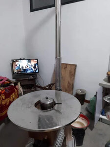璞灶旺冬季柴火灶加厚加高农村取暖炉烧柴家用节能柴煤两用多功能回风炉 1米圆桌不锈钢(柴火炉)