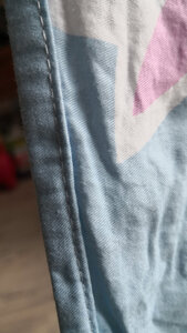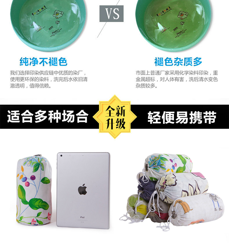 纯棉的,做工也可以,图案很可爱,单人用这个尺寸应该够了,太大带着不方便,这几天就用一下,然后追评。该有收纳袋子可以搭配,喜欢😍