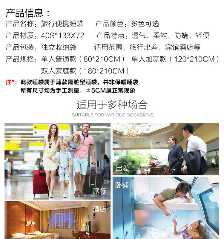 四万公里酒店隔脏睡袋单人便携出差旅行床单被套旅游宾馆酒店用品SW7307