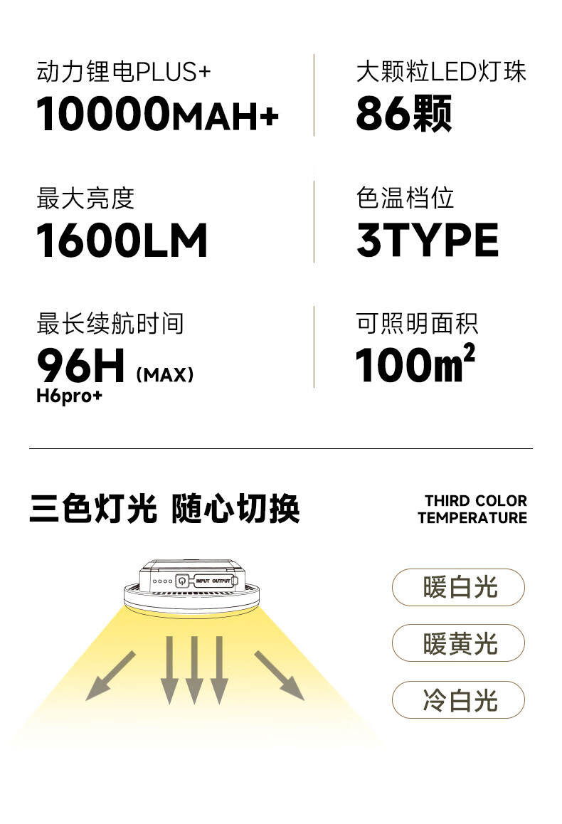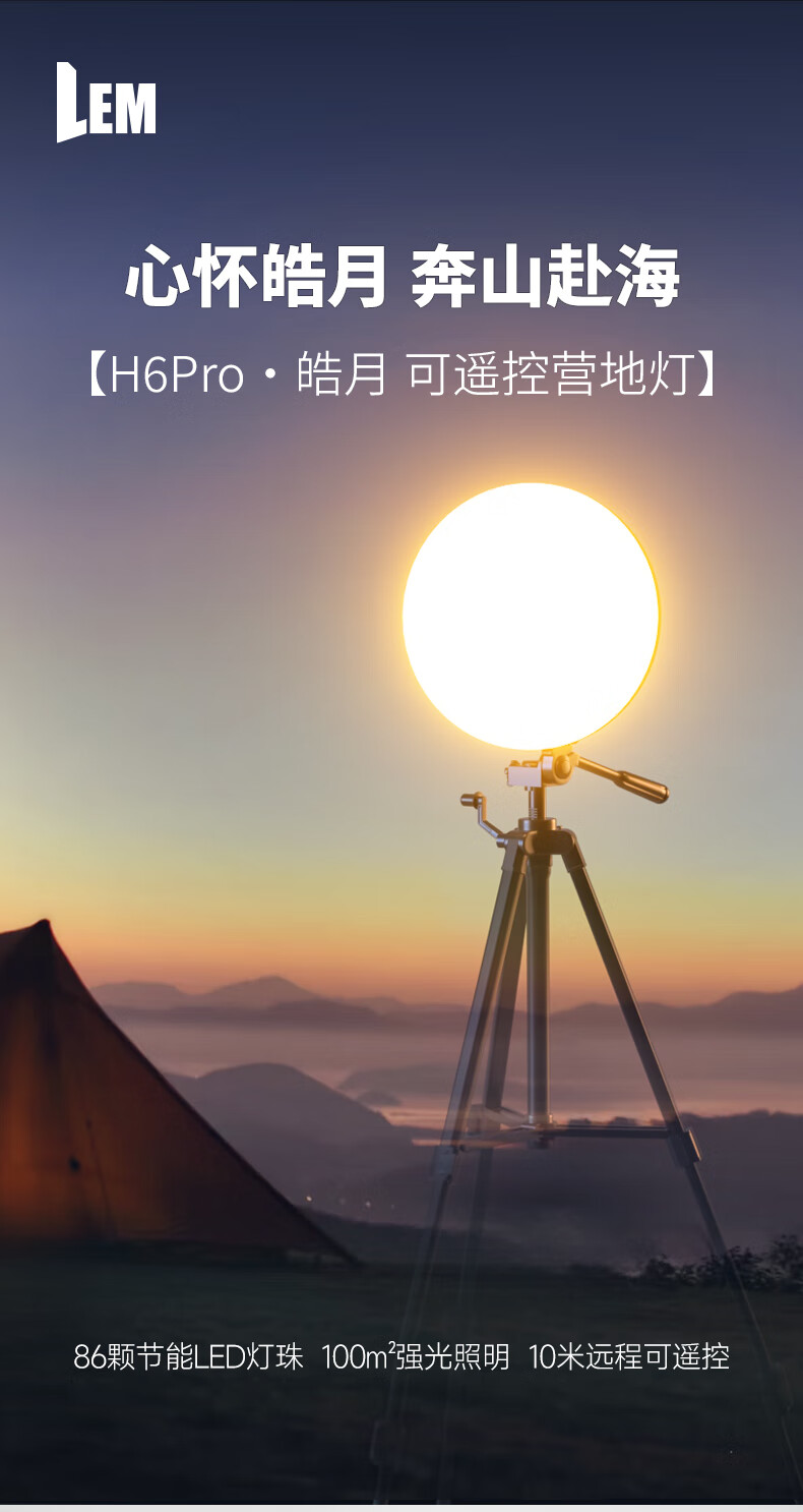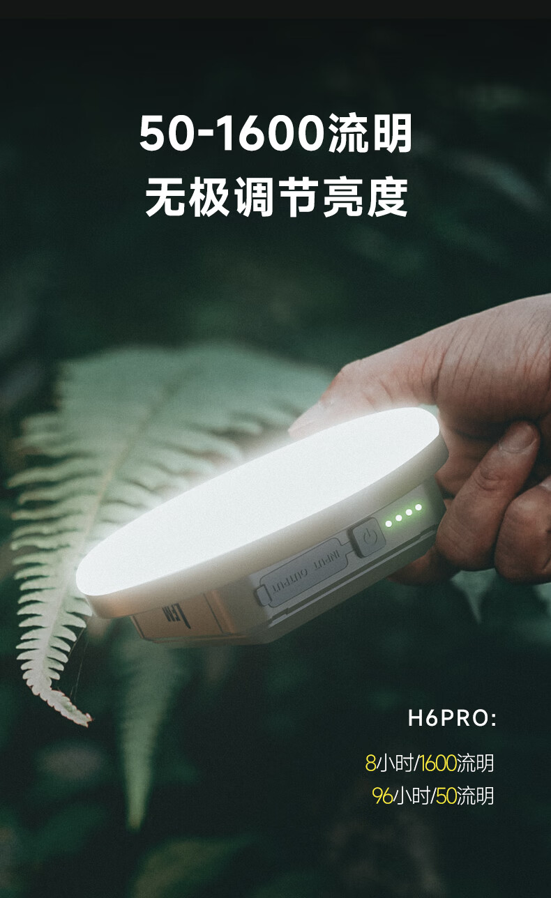 H6pro露营灯真不错!绿款颜值高,遥控超方便,不用摸黑找开关。亮度足续航久,帐篷里挂照明效果很棒。收纳包实用,外出带着省心。停电应急、露营野餐都很合适,值得入手!👍