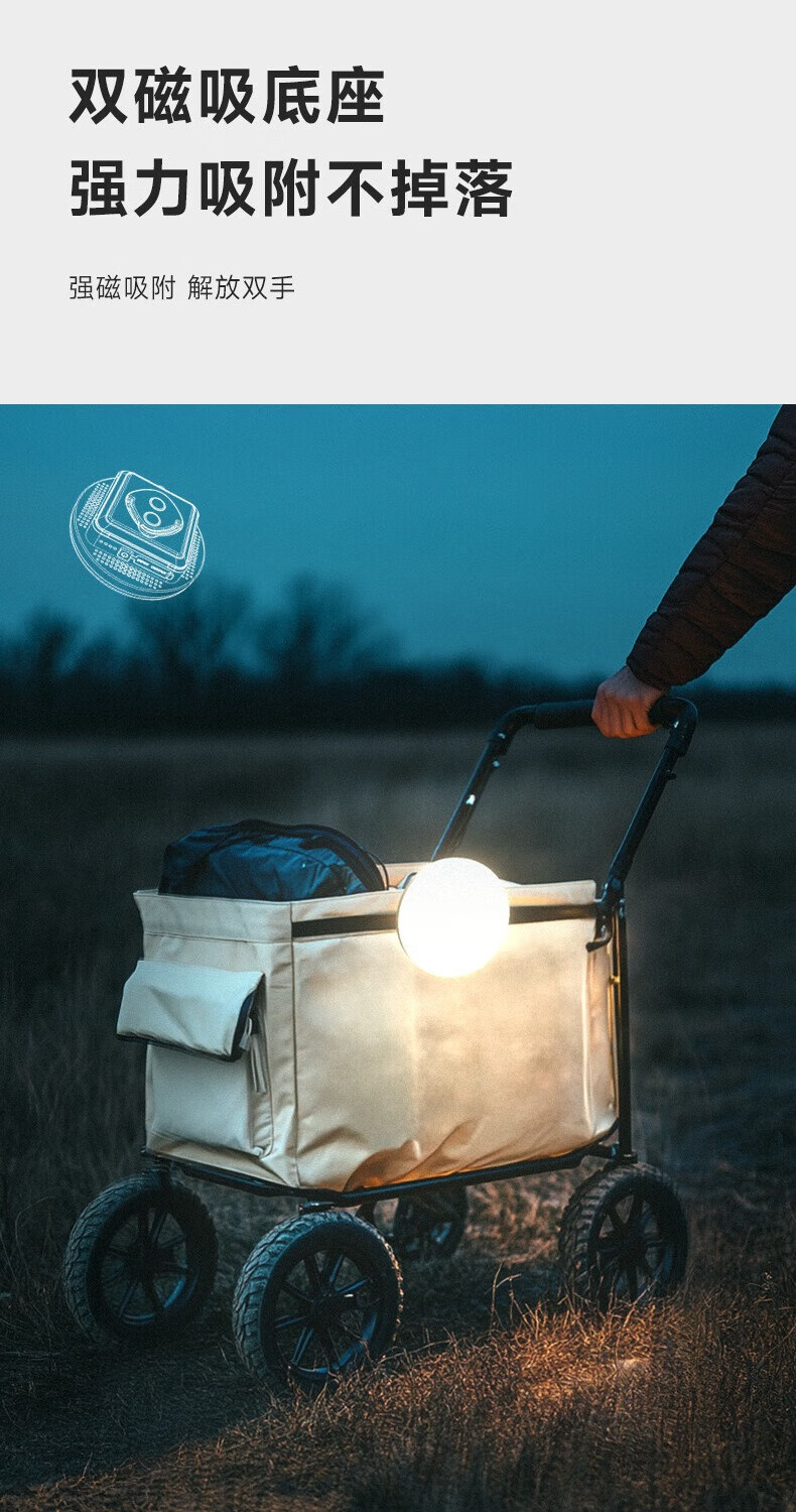 露营新装备,作为主灯使用,非常亮堂,后面的磁铁也吸得很牢固,还可以挂起来,目前来说很满意,续航应该也不错,基本满足需求,自己配了个布袋子装着挺好的