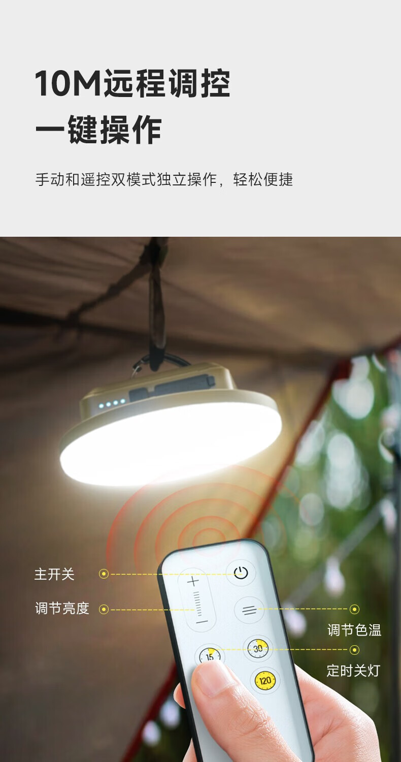 专门选了带遥控器的灯,在帐篷里面使用起来非常方便。不用踩在气垫床上去开关灯,灯光亮度可调节,很满意。