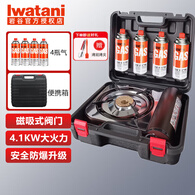岩谷(Iwatani)卡式炉4.1KW便携猛火防风烤肉户外炉具烤盘套装野外卡斯磁士燃气 ZA-41+全收纳箱+4瓶气